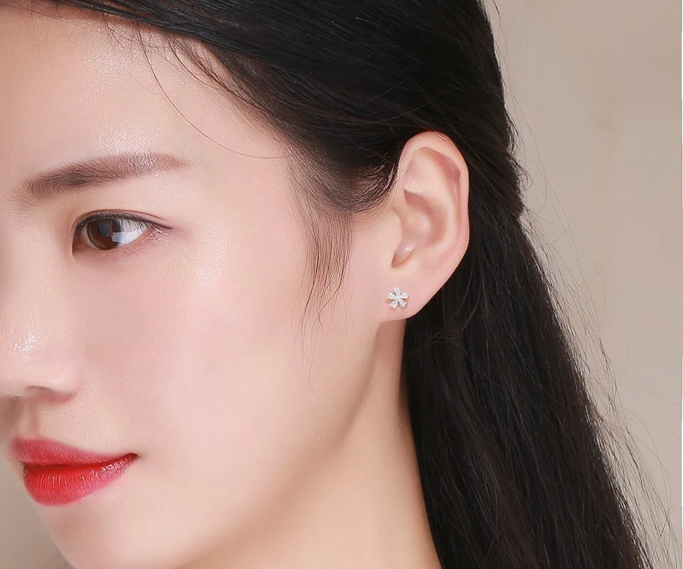 Милые розовые серьги-гвоздики из стерлингового серебра 925 пробы с цветком для женщин и девочек, детские ювелирные изделия для пирсинга Orecchini Aros Aretes Kolczyki