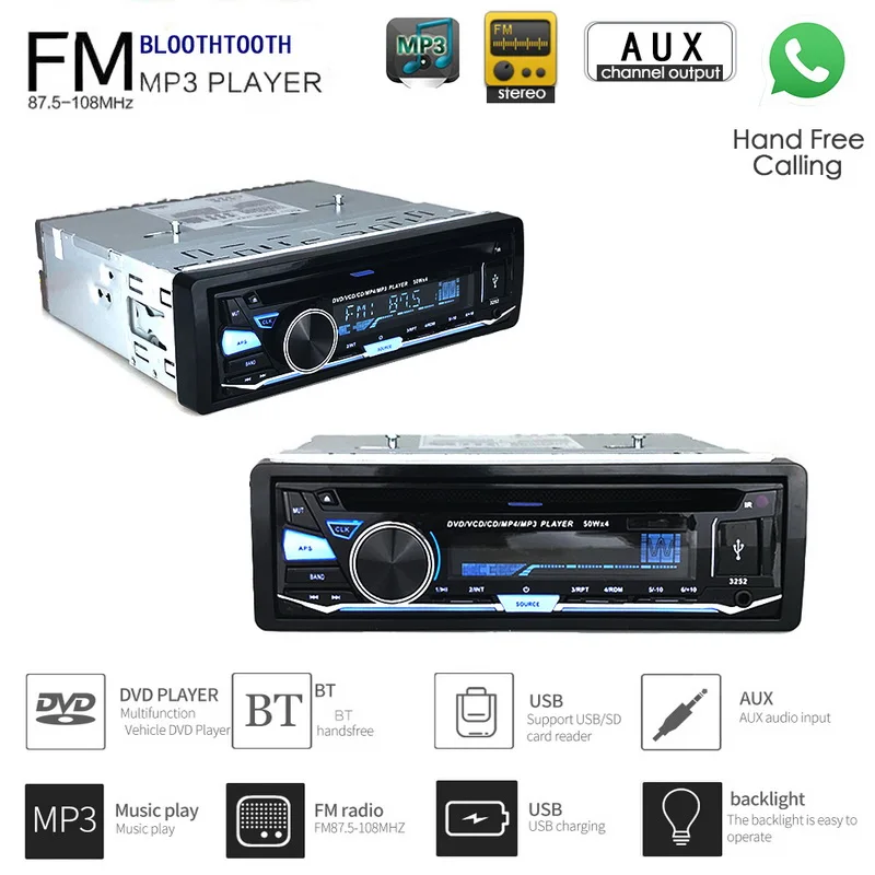 Один 1 Din 12V автомобильный DVD CD плеер с BT 3252 автомобиль MP3 стерео Handfree Авторадио аудио Радио беспроводной пульт дистанционного управления