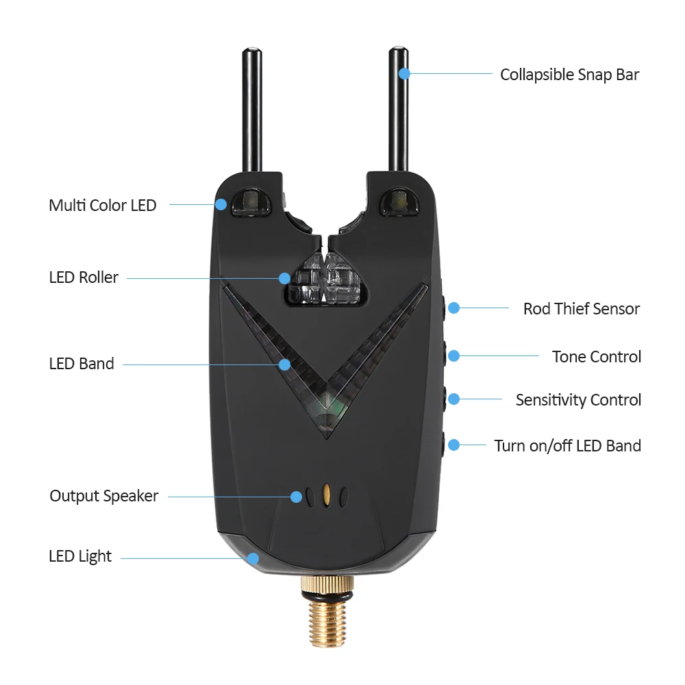 Беспроводной пульт дистанционного управления сигнализацией от укуса не только имеет звуковой сигнал и светильник во время укусов рыбы, но и посылает сигнал на расстояние более 100 метров, так что вы можете уйти или отдохнуть с приемником, не бойтесь пропустить рыбу на крючках.