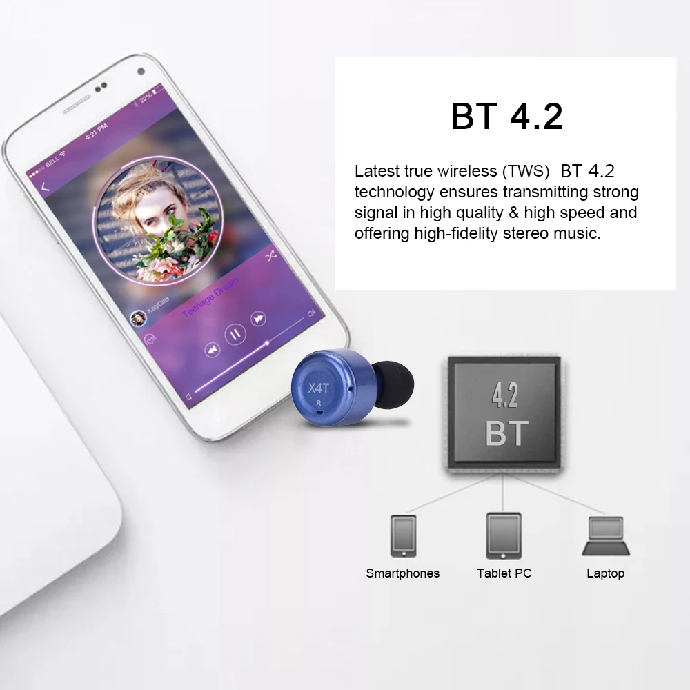 Bluetooth-наушники X4T специально разработаны для любителей музыки и спорта, оснащенные передовыми технологиями Bluetooth 4,2, встроенным высококлассным микрофоном и динамиком, функция hands-free и легкий дизайн. Это даст вам потрясающий опыт; Вы можете наслаждаться любимой музыкой во время занятий спортом.