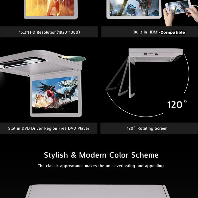 13,3 дюймов 1080P TFT-LCD Автомобильный потолочный монитор Автомобильный dvd-плеер монитор Встроенный динамик FMHDMI-совместимыйБеспроводные наушники SD 2 IR сенсорная кнопка