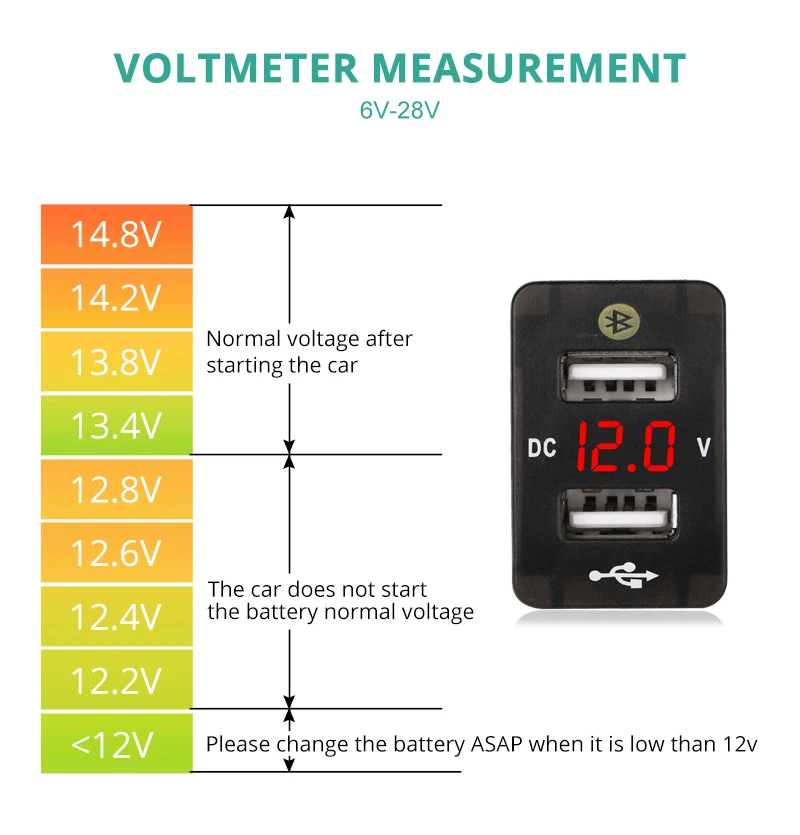 Входное напряжение: 12-24 В Выход ток: 4.2A (2.1A + 2.1A) Диапазон обнаружения напряжения: 6-28 в GPS Диапазон отклонения: 50 м Размер: Приблизительно: 36*23*52 мм 1,45 "* 0,9*2" (включая размер контактов) Примечание: способ подключения: "Красный" для подключения положительного полюса "+"; "черный" отрицательный полюс "-" Доступно для HondaGreiz 2016Jade 2013-2016Elysion 2012-2016City 2015-2016Accord 2014-2016Odyssey 2015-2016Gienia 2017Civic 2016Xrv 2015-2016Fit 2014-2016Crider 2013-2016Vezel 2015-2016Avancier 2017Если у вашего автомобиля нет вышеуказанной модели, пожалуйста, сначала измерьте Размер монтажного отверстия и убедитесь, что ваш автомобиль подойдет.