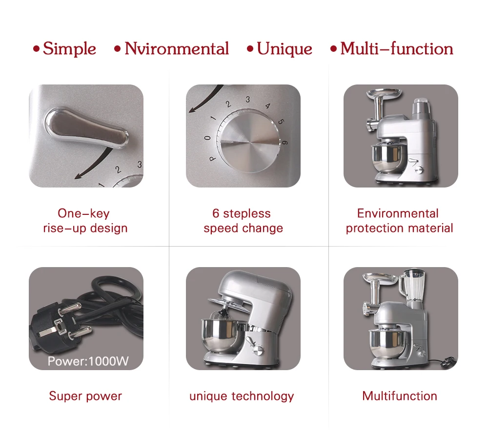 Подходит для смешивания или разминания теста/приготовления лапши/взбивания яиц/приготовления торта/мясорубки/изготовления колбасы/овощерезки/блендера соковыжималки и т. Д.