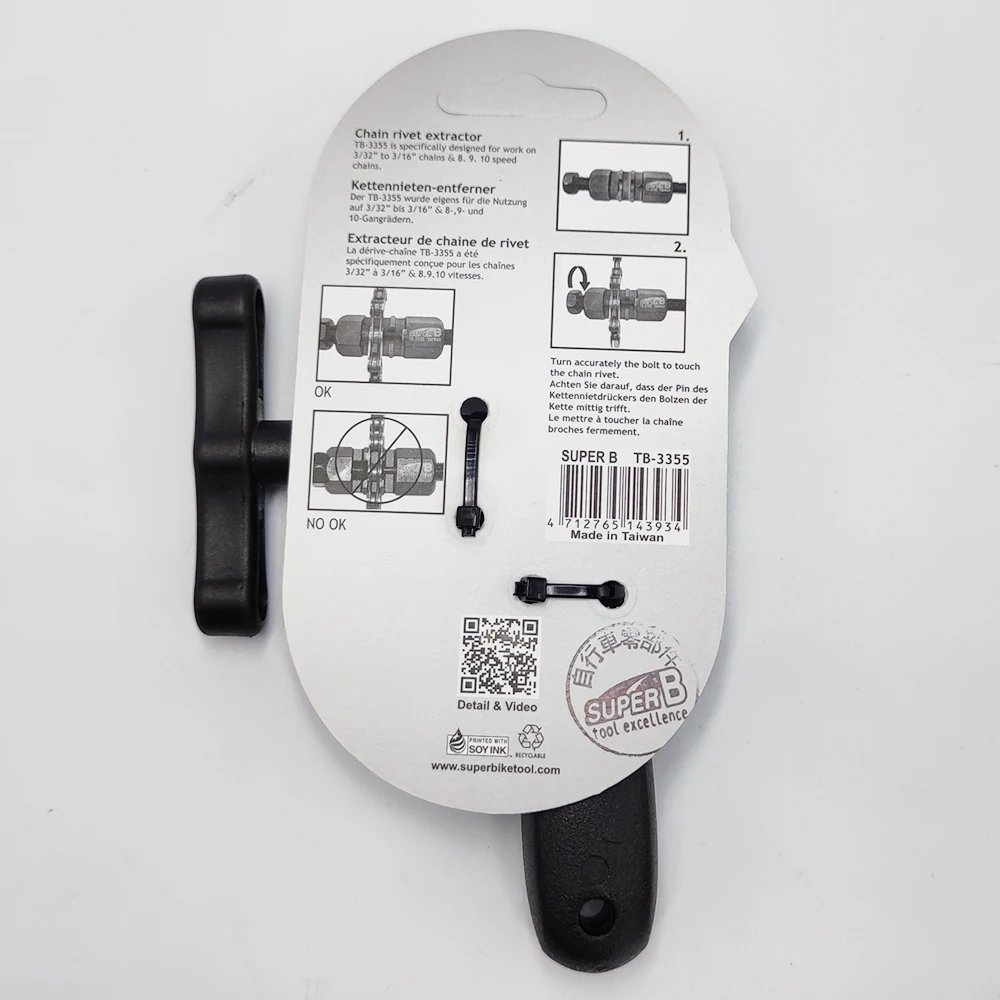 Бренд: Super B Модель: TB-3355 Происхождение: Тайвань (Китай) • Экономичный инструмент для водителей и домашней механики. • Для цепи от 3/32 до 3/16 дюйма и скоростных цепей 8, 9 и 10. • Конструкция болта помогает плавно работать на любой цепи, точно поверните болт к штифту цепи и предотвратить повреждение цепи.