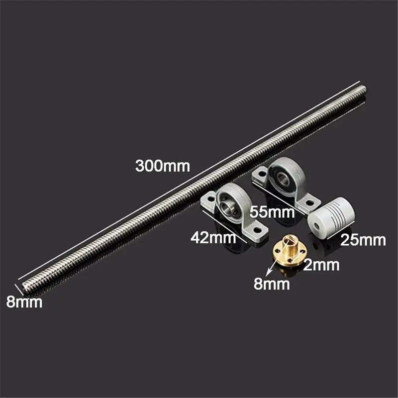 T8 300 мм из нержавеющей стали ходовой винт комплект с соединением вала и шаровой подшипник