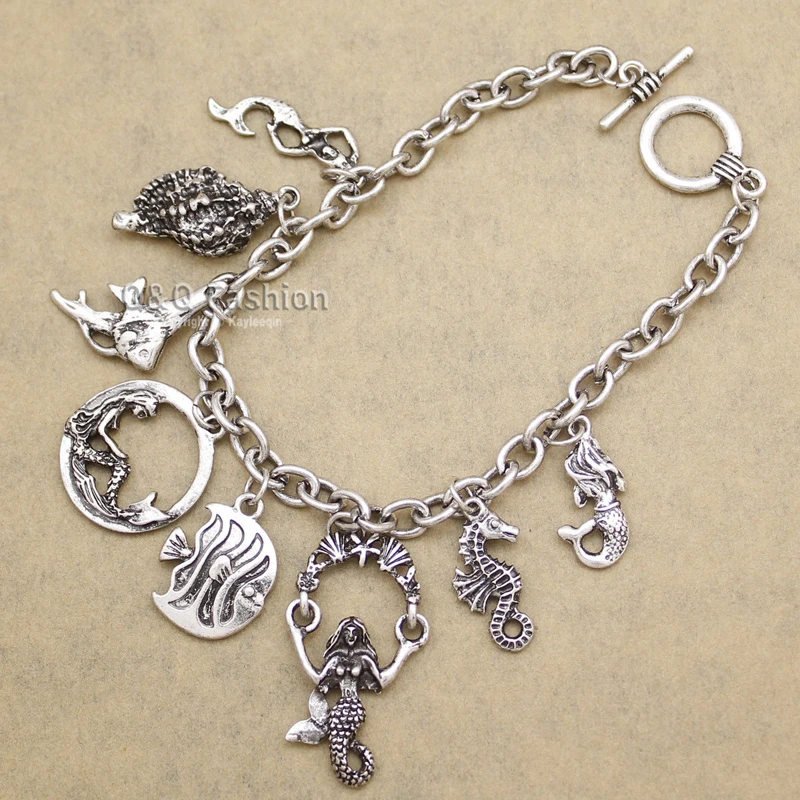 Condition: 100% New Type: Vintage Gold Princess Ariel Mermaid Sea Horse Conch Charm Cuff Bangle Bracelet Size: (1inch=2.54cm) Length.:20cm