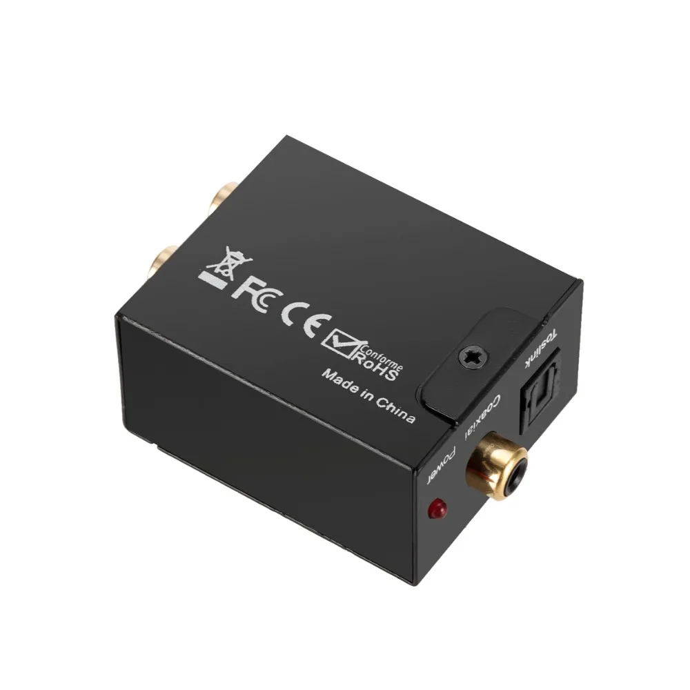 Преобразует коаксиальные или toslink цифровые аудио сигналы в аналоговый L/R аудио и подключается к внешнему устройству, например, усилитель через стандартные RCA разъемы
