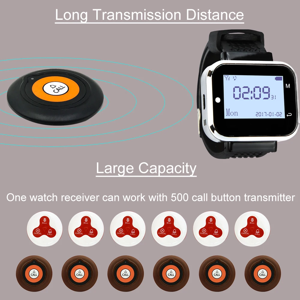 Описание:Спасибо за посещение нашей веб-страницы с кнопками беспроводного вызова.Теперь Наши беспроводные системы вызова широко используются в фаст-фудах, пищевых кортах, клиниках, церкви, больницах, спа и салонах, автомагазинах или других случаях очереди. Они приветствуются и популярны.Преимущества:Экономия затрат на рабочую силуУлучшение изображения обслуживанияСамое главное, повышение эффективностиКак использовать:Во-первых, кнопки вызова вставляются или ставятся на стену или на стол, когда у гостей есть какие-либо услуги, он или она нажимает кнопки вызова, приемник (светодиодный экран или пейджер часов) получите сигнал с вибрацией или звуком, показывая номер таблицы, Тогда официант будет знать, какой стол будет подан.