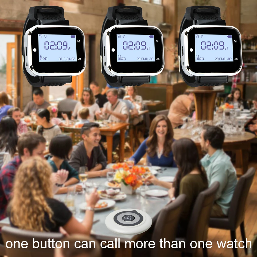 CTW06 функция пейджера часов:Беспроводная технология RFМодный дизайн часовМатричный ЖК-экранДо 999 каналовКнопка вызова поддержка передачи данных под заказКнопка вызова слова выбираютсяРежим отображения одного или спискаТочный дисплей времениВибрация/звуковой сигналИндикация низкой мощностиВстроенный Съемный перезаряжаемый аккумуляторCTW06 часы пейджер Технические данные:1). Емкость: 500 шт. передатчиков пейджеров2). Китайский и английский3). Режим оповещения: вибрация, кольцо или вспышка4). Чувствительность:-110 дБм5). Хранение: 20 телефонных номеров (для организации очереди)6). Режим питания: 250 мА · ч литиевая батарея7). Время работы в режиме ожидания: 7 дней (в идеальных условиях)8). Частота: 433,92 МГц9). Совместимость с кнопками 1, 2, 3, 4, 510). Размер: 50*41*14 мм (не включая ремешок)11). Цвет: черный12). Материал: пластик