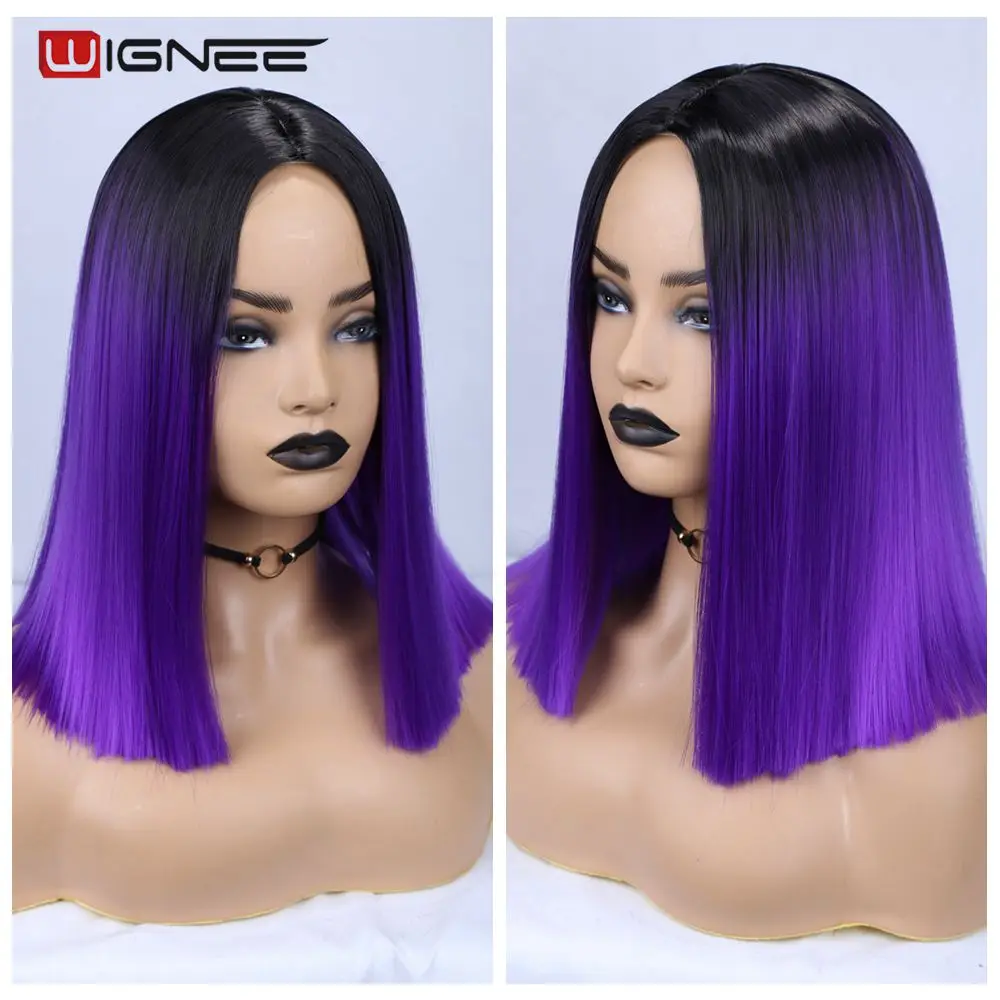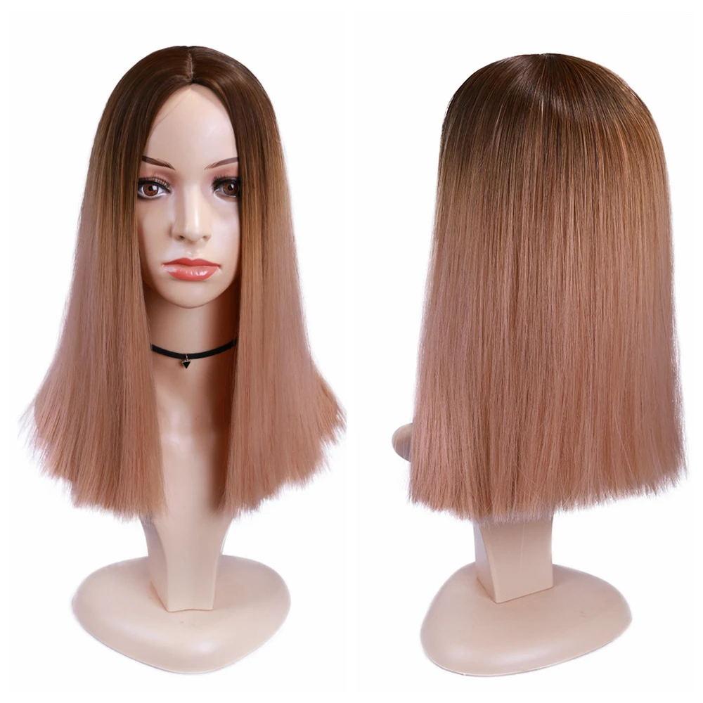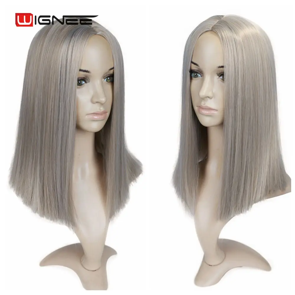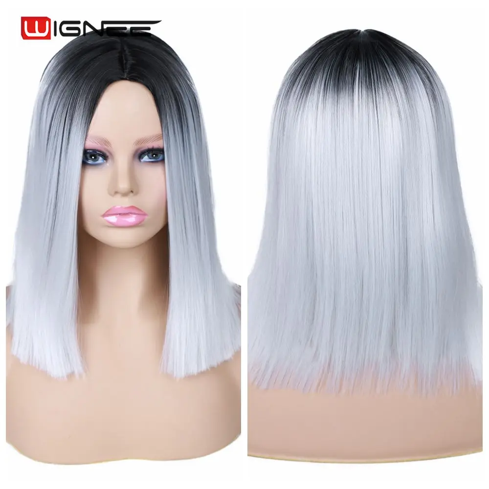 Wignee 2 тона Омбре коричневый пепельный блонд синтетический парик для женщин средняя часть короткие прямые волосы высокая температура косплей волосы парики