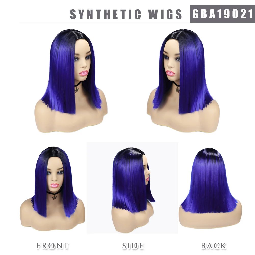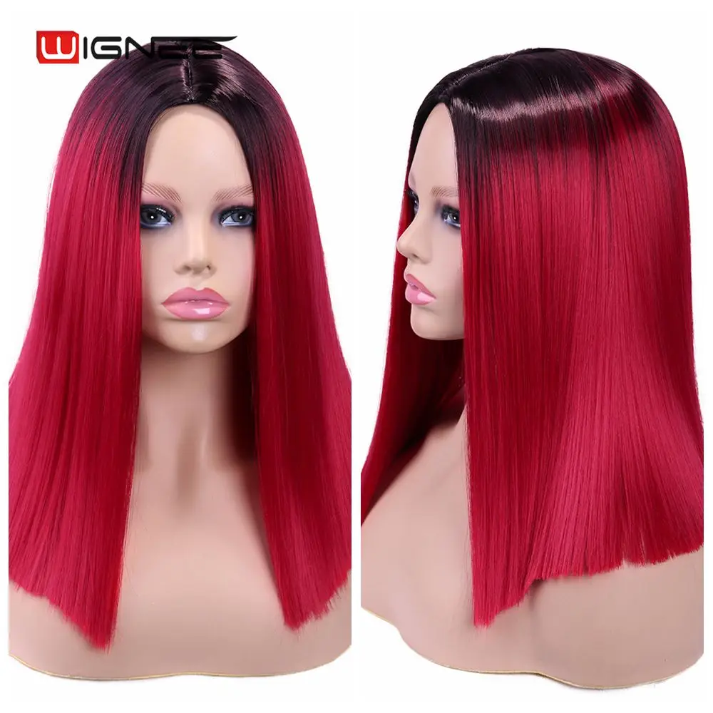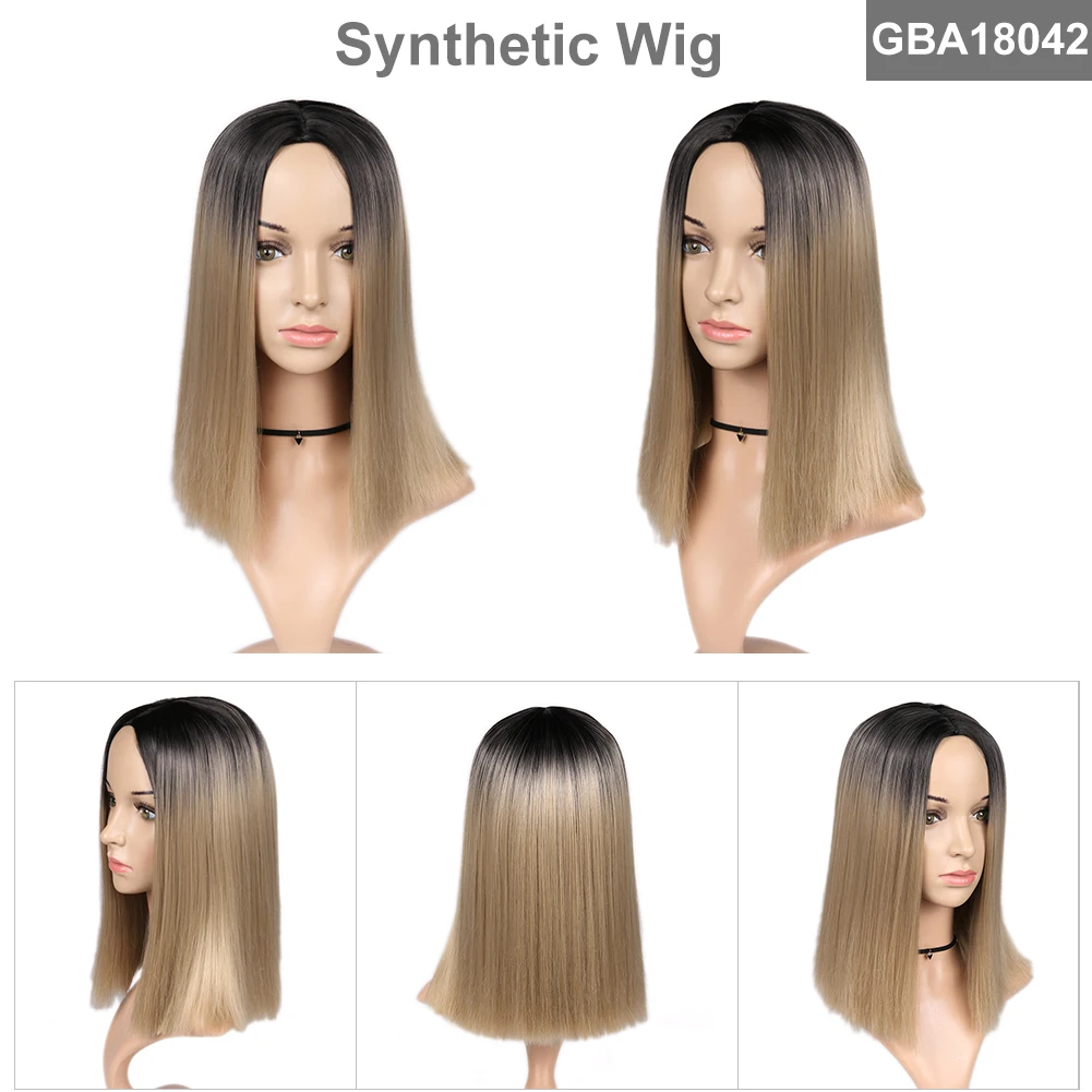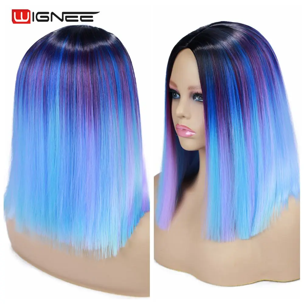 Wignee 2 тона Омбре коричневый пепельный блонд синтетический парик для женщин средняя часть короткие прямые волосы высокая температура косплей волосы парики