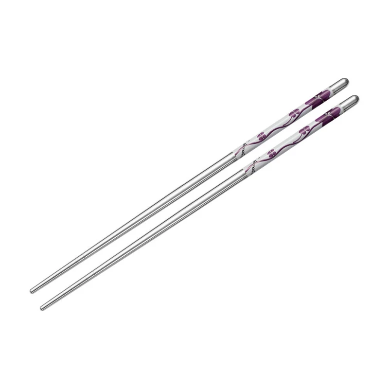 1 пара палочек для еды из нержавеющей стали, китайские японские палочки для еды, стильные белые палочки для еды с цветочным узором, Новые палочки для еды из нержавеющей стали