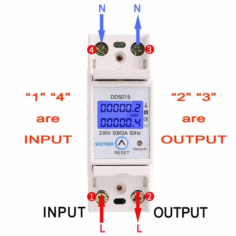 Din-рейка однофазный ваттметр Потребляемая мощность ватт электронный счетчик энергии кВт/ч 5-80A 230 В переменного тока 50 Гц с функцией сброса