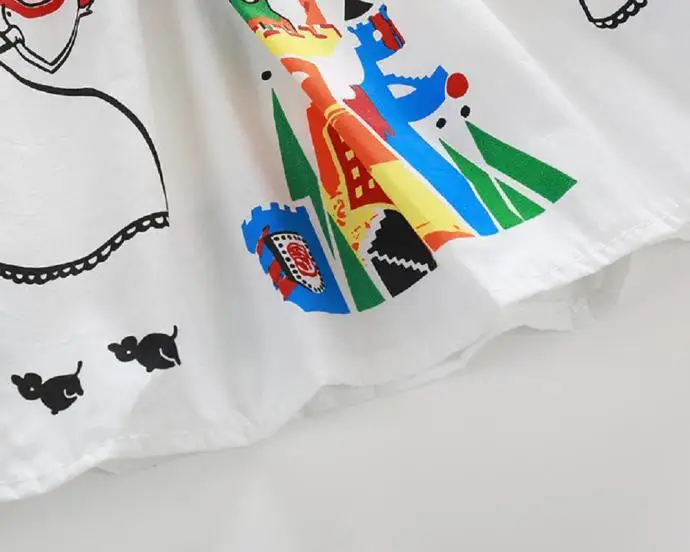 2018 Одежда для девочек; милое белое платье с рисунком для девочек; платье принцессы