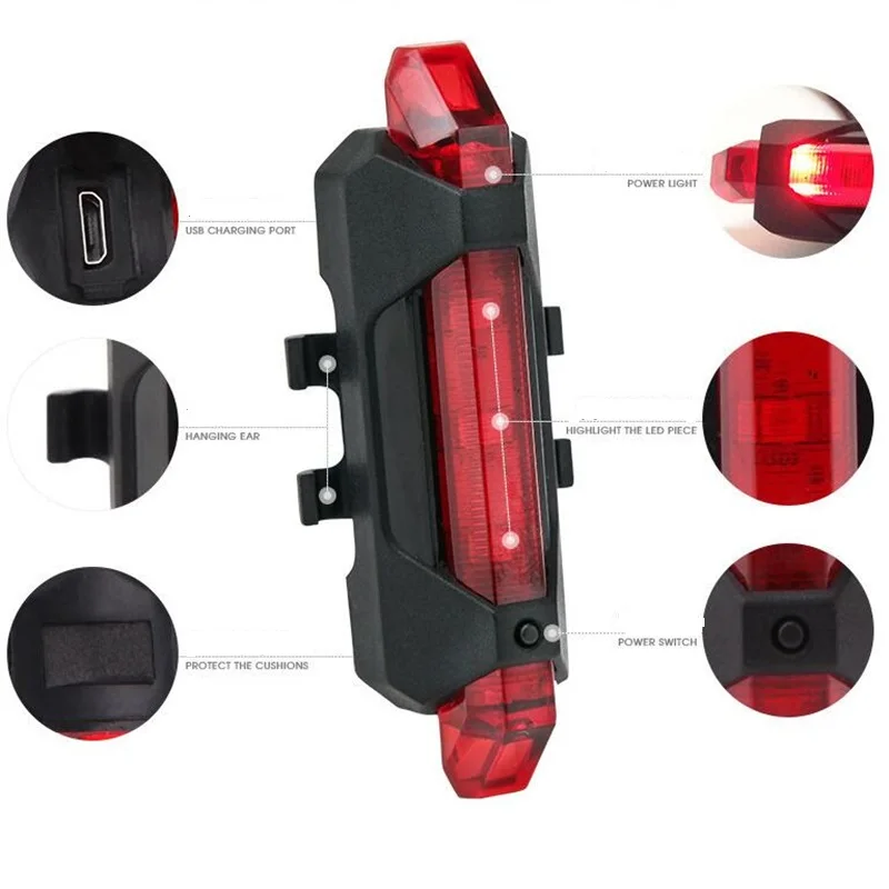 Упаковочный лист: 1 комплект, велосипедный светильник (светильник + usb-кабель для зарядки, резиновая катушка)