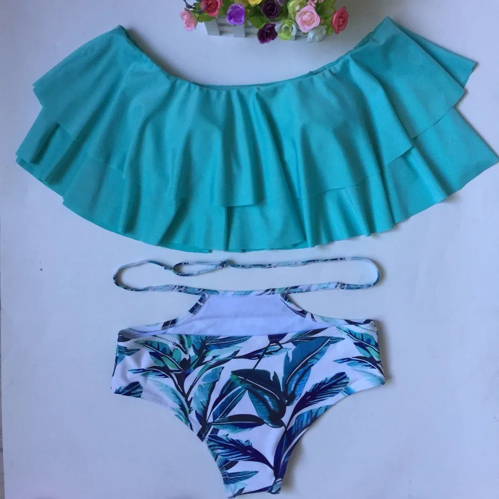 Новый комплект из двух предметов купальник сексуальный бикини с высокой талией, женские купальники большого размера купальный костюм для женщин 2018 от Shoulde XXL купальный костюм