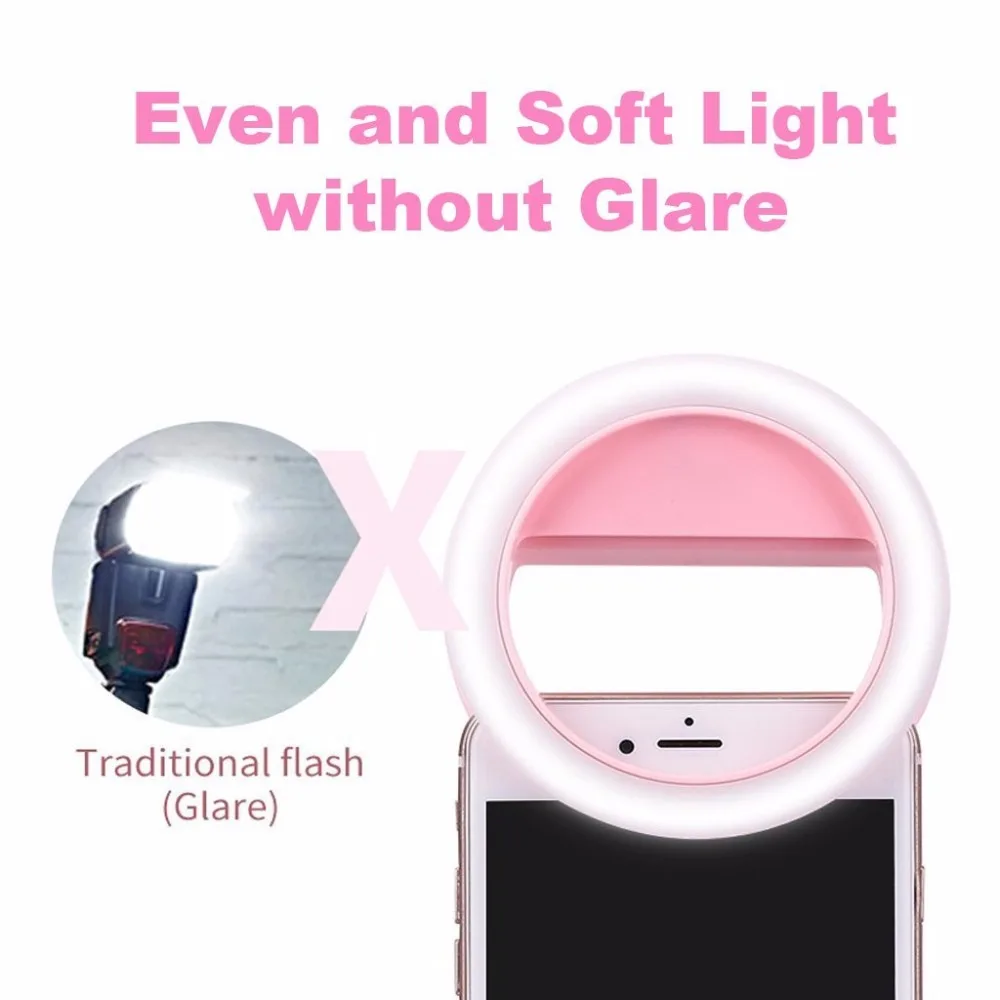 Телефон селфи кольцо Вспышка светодиодная заполняющая лампа камера фото видео прожектор для iphone X 8 7 6 Samsung S8 Plus Xiaomi Huawei Характеристики: очень портативный для переноски. Хорошо для вас, чтобы сделать красивые фотографии. Возьмите селфи в любом месте, темные ночные клубы, вечеринки, кемпинг и т. д. Кольцевой макросъемный светильник, разработанный специально для крупным планом, медицинских, научных, медицинских и других. Эта макро-Кольцевая вспышка освещает предмет, независимо от того, насколько Низкие условия освещения. Описание: Материалы: PC + ABS Питание: от аккумулятора AAA (не входит в комплект) Светильник температуры: 3000-5000K Спецификация: Размер: 8,3*2,5 см Посылка Размер: 13*9,5*3 см Цвет: белый, черный, розовый, зеленый Посылка включает в себя: 1 х чехол для телефона светильник