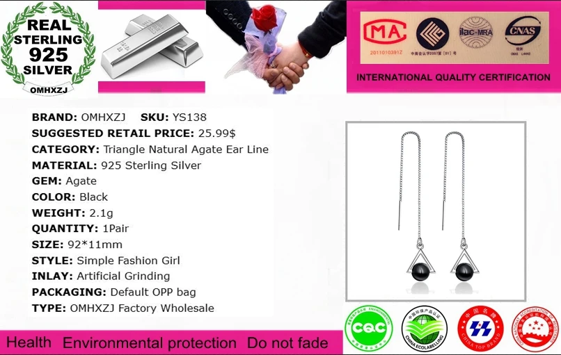 OMHXZJ Оптовая Продажа 925 пробы серебряных ушей