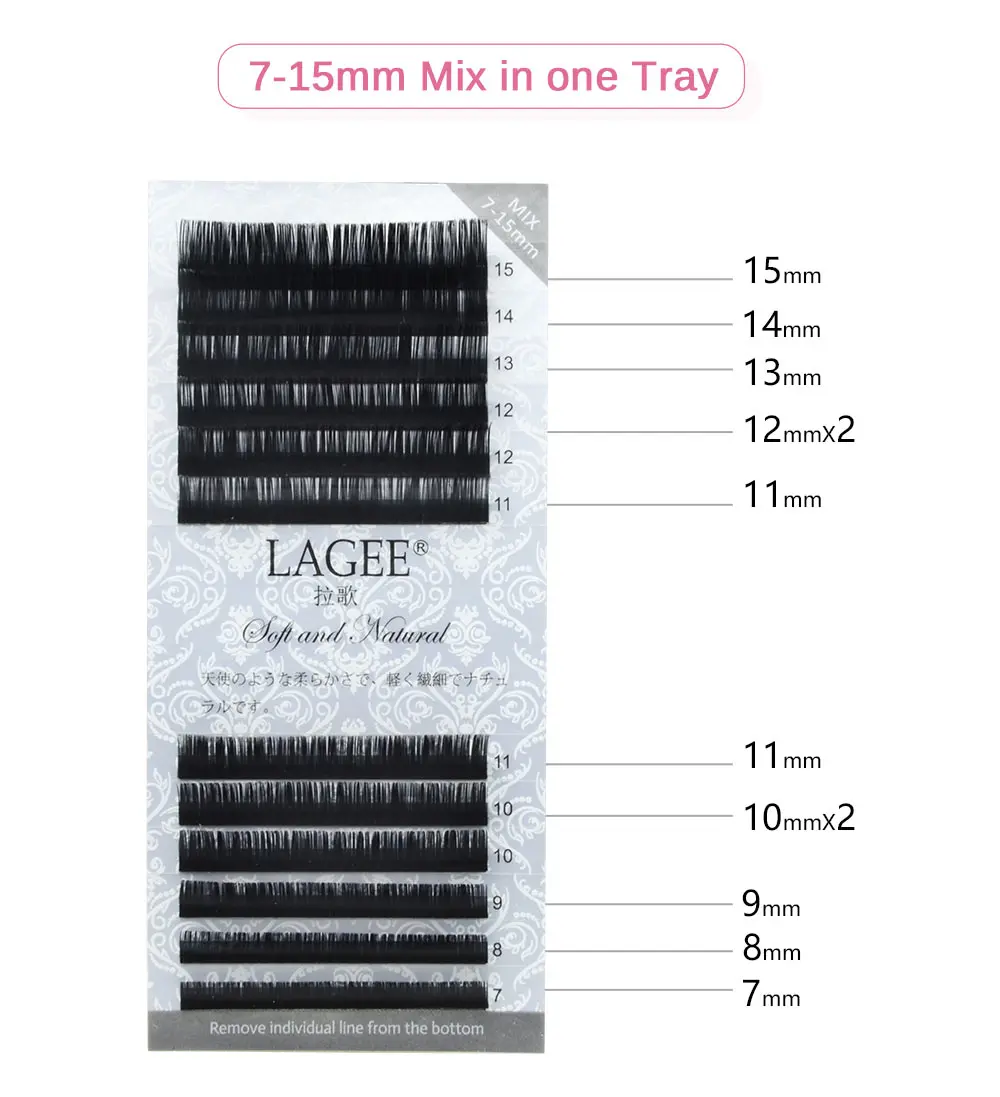 Бренд: LAGEE Локон: J / B / C / CC / D Толщина: 0,10 мм/0,12 мм/0,15 мм/0,20 мм/0,25 мм Длина: 7 мм/8 мм/9 мм/10 мм/11 мм/12 мм/13 мм/14 мм/15 мм/7-15 мм