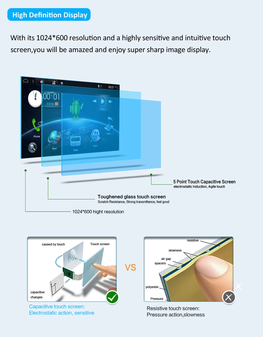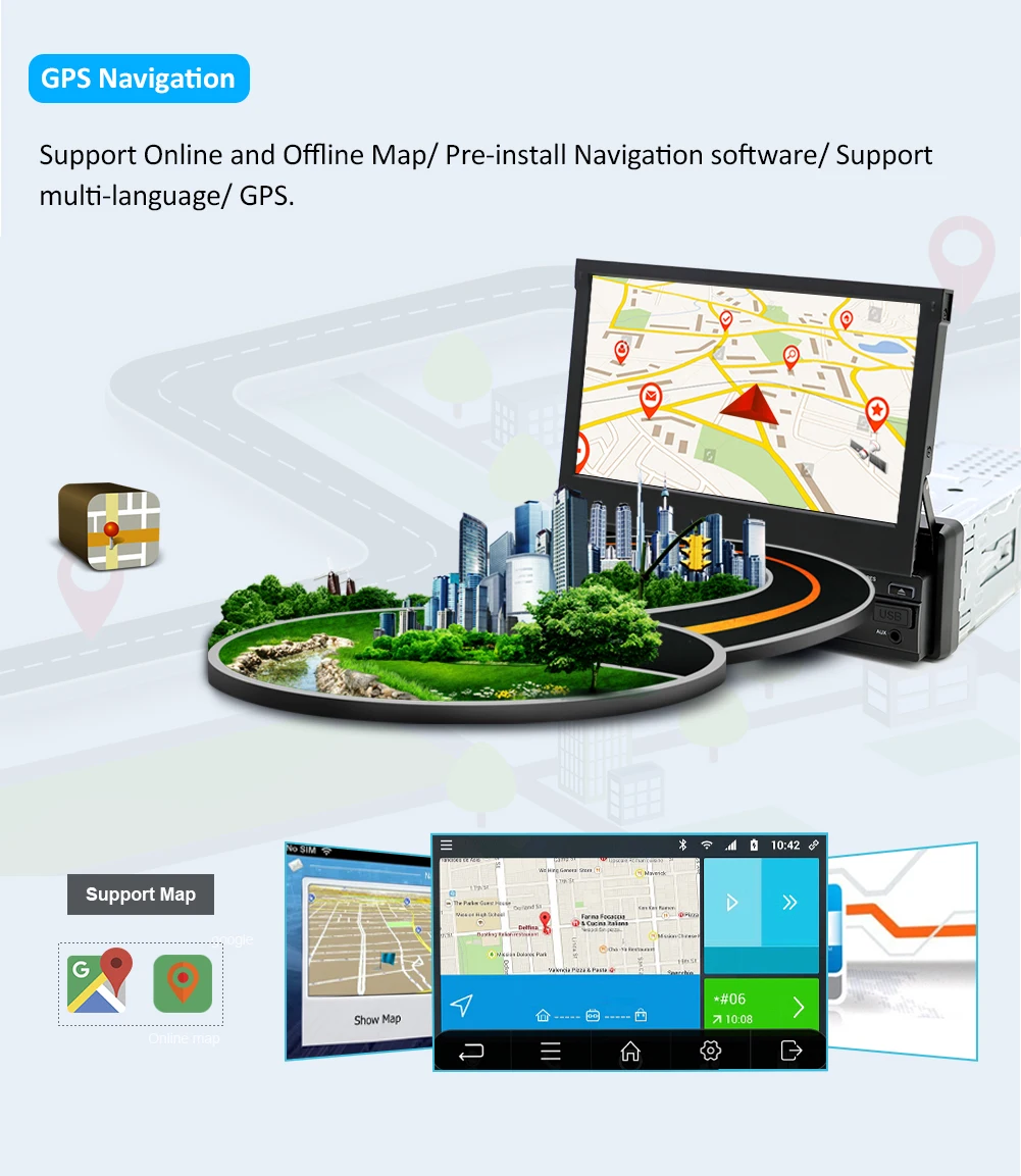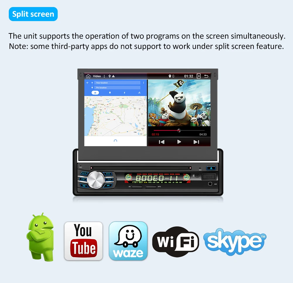 1:Bluetooth для освобождения рук. Поиск телефонных книг по Bluetooth, от A до Z 2:HD емкостный сенсорный экран: 1024*600 3. Камера заднего вида/запись привода DVR с тылового USB: Поддержка 4:OBD, внешний микрофон, зеркальная связь: поддержка (требуется дополнительная оплата) 5: холодный запуск около 20-35 секунд 6:Mirror Link, управление на рулевое колесо: Поддержка 7:Wi-Fi: Встроенный/через телефон, как Wi-Fi Горячая точка. 8. Поддержка приложений: много, например: Google Play Store, Skype, Facebook, YouTube, Twitter и т. Д. 9: Поддержка RDS.FM частота: 87,5-108mh AM частота: 522-1710 кГц 10: Автомобильный Интернет: Встроенный Wi-Fi, поддержка 3G/4G/современный (необходимо доплатить) 11: поддержка онлайн-карты GPS, таких как Google Yandex.SYGIC,IGO,TOMTOM/ Waze. Карта Яндекса должна связаться с нами, чтобы установить 12: Многоязычный язык s: английский/русский/французский/немецкий/испанский/итальянский/Арабская/Португальский/Турецкий/тайский/Польский/иврит и т. д., 60 видов языков 13. Рабочая температура: -20 °C-+ 70 °C Температура хранения: -30 °C-+ 80 °C 14. Логотип загрузки: Выберите Встроенный 50 видов Автомобильного Логотипа. Выберите логотип запуска автомобиля, как вам нравится. 15:RCA кабели для сабвуфера, кабель питания plug and play, легко устанавливается 16: ОС Android, Google Play Store, Skype, Facebook, YouTube, Twitter и т. Д. 17. Гарантия: 1 год 18. Бесплатный подарок: камера заднего вида + встроенная карта