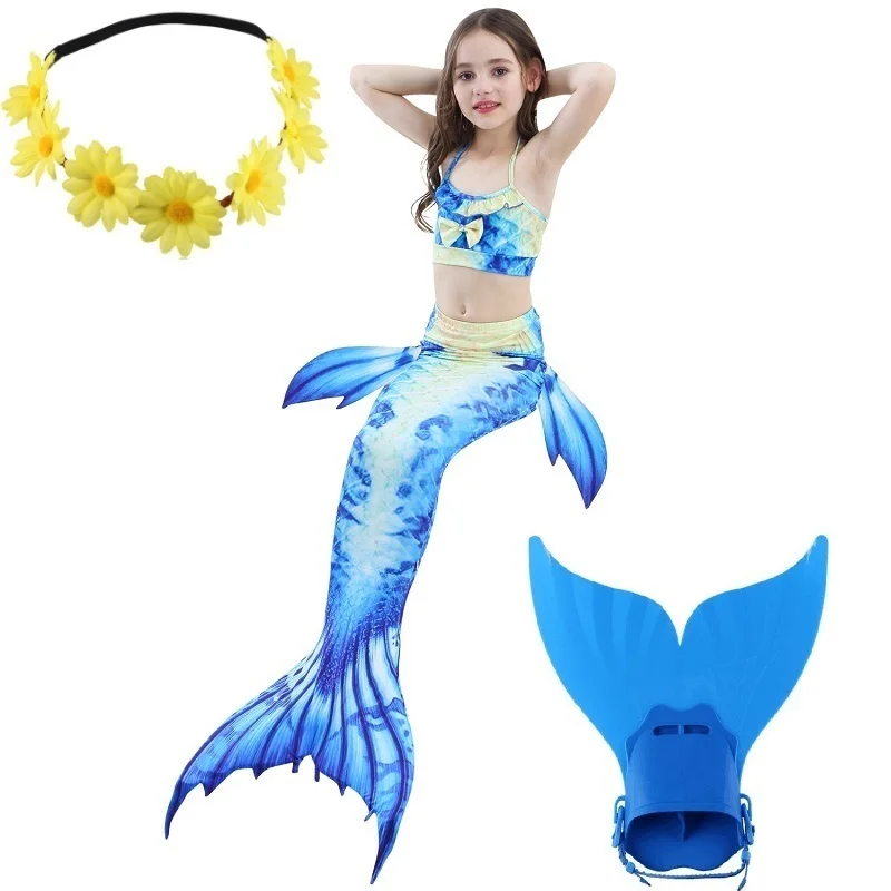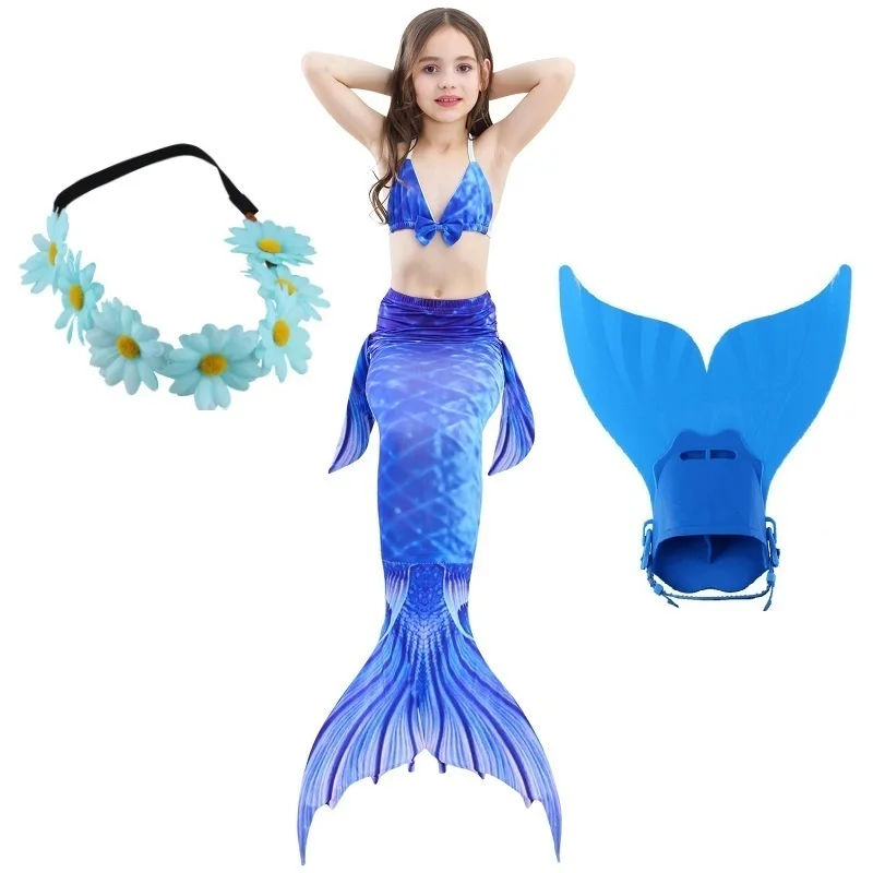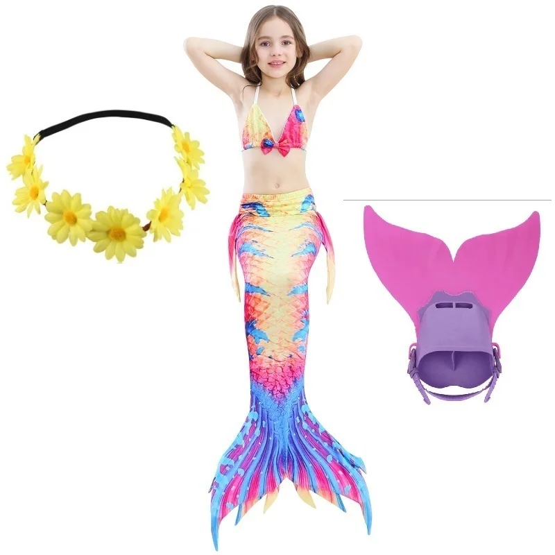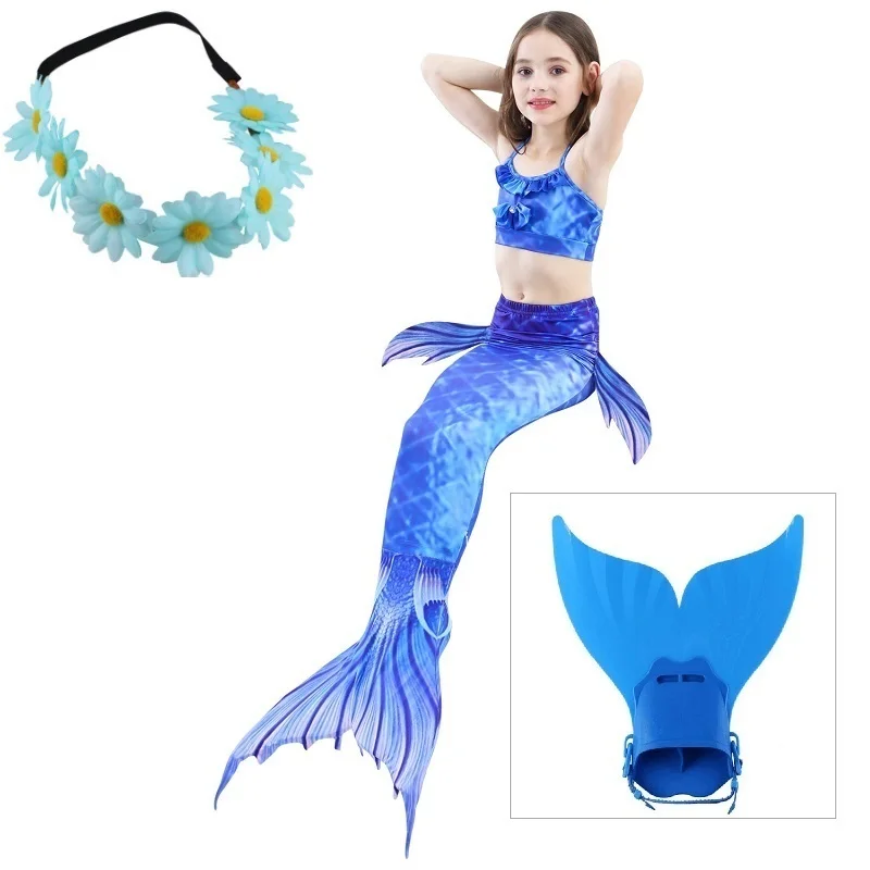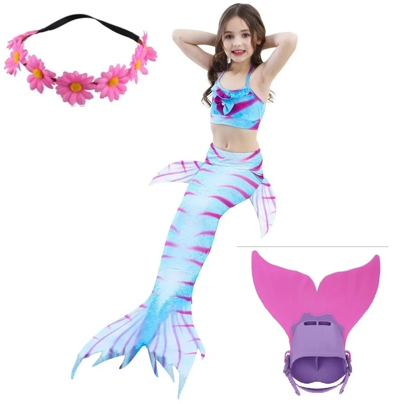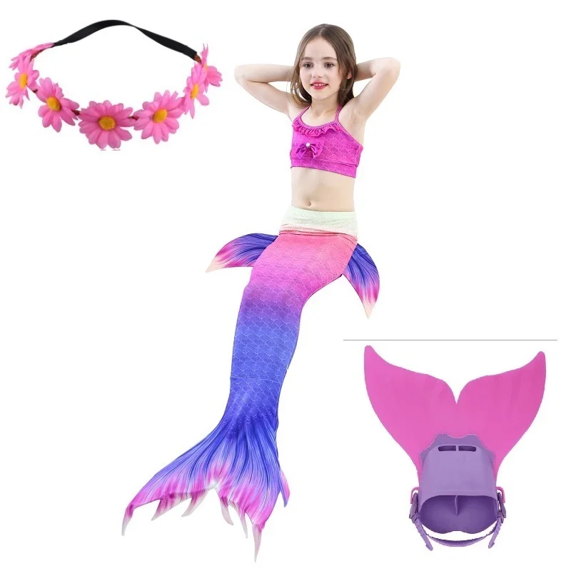 4Комплект для девочек, купальный костюм для плавания, хвост русалки с моноластами, детский купальный костюм Ариэль с хвостом русалки, Детский костюм для костюмированной вечеринки