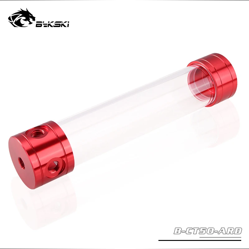 Материал: AL + PMMA Резьба: G1/4" Диаметр: 50 мм Длина: 260 мм Соединение: верхнее отверстие/боковые 3 отверстия