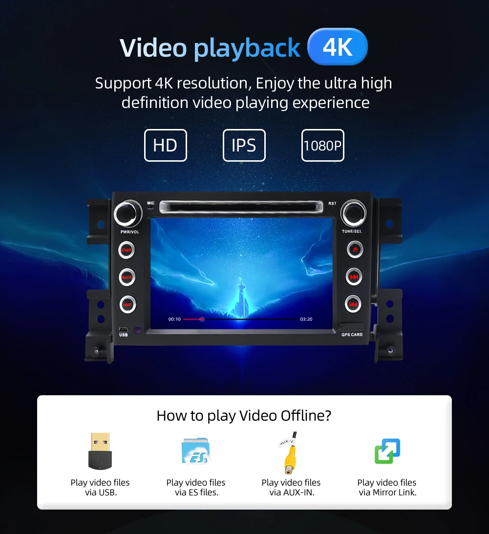 Сенсорный экран + радио + FM/AM + RDS + gps-навигация + карта + Wifi + Bluetooth + управление рулевым колесом + сплит-экран + USB + SD + AUX вход/выход + зеркальная ссылка + задний камера + сабвуфер + Play Sore + EQ + набор обоев + логотип автомобиля + 3G/4G + TPMS + DAB + OBD 2 + DVR + TV