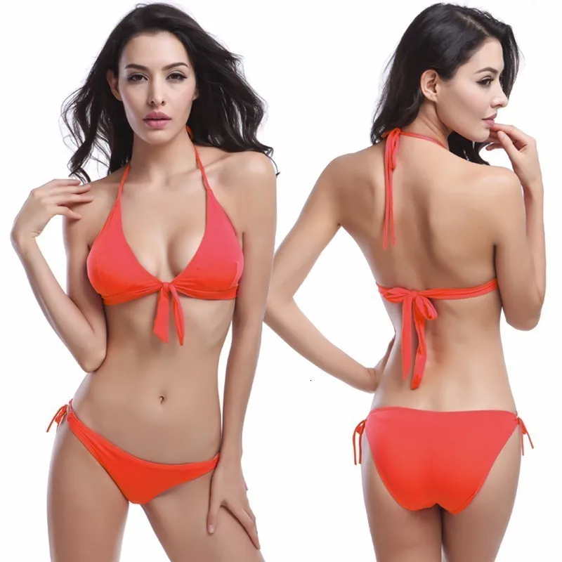 Женский сексуальный купальник, 2 предмета, раздельное бикини, свежий купальный костюм, однотонный купальный костюм с подкладкой, горячая Распродажа 2018, сексуальный купальный костюм для девочек