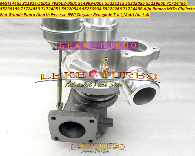 Характеристики турбоОптовая продажа; Новинка; MGT1446Z 811311-5001S 799502-0001 799502-0002 799502-5001S 799502-5002S 811311-0001 814999-0001 811311-0002 55231115 55228035 55219660 71724486 55238189 71724850 71724851 55220546 55250934 55222266 турбокомпрессор 71724488 для Alfa Romeo MiTo, giulietta для Fiat Grande, Punto, Abarth Esseesse, для JEEP (Chrysler) Renegade 2008-2015 Multi Air 1.4LПримечание.Эта модель имеет 2 варианта:Для FIAT версииДля JEEP версииТурбо Модель:MGT1446Z НовыйНомер детали:811311-5001S 799502-0001 799502-0002 799502-5001S799502-5002S 811311-0001 814999-0001 811311-0002Номер OEM:55231115 55228035 55219660 71724486 55238189 7172485071724851 55220546 55250934 55222266 71724488Размер: 280*260*250 ммДетали упаковки: прочная картонная коробкаПрименение транспортного средства:Для Alfa Romeo MiTo,Giulietta для Fiat Grande, Punto, Abarth Esseesse, для JEEP (Chrysler) Renegade 2008-2015Двигатель применения:T-Jet, Euro 5 Multi Air 1.4L 1368 ccm, 4 цилиндра, 16 клапанов--