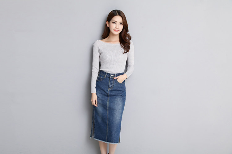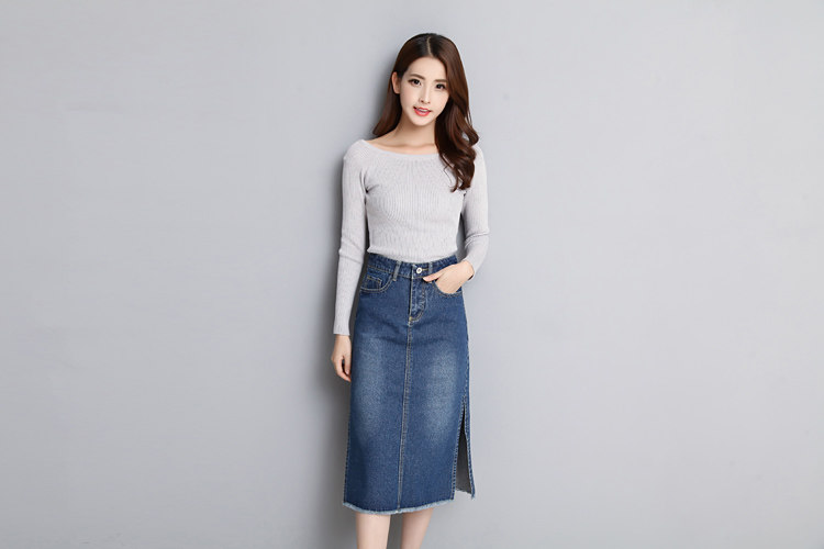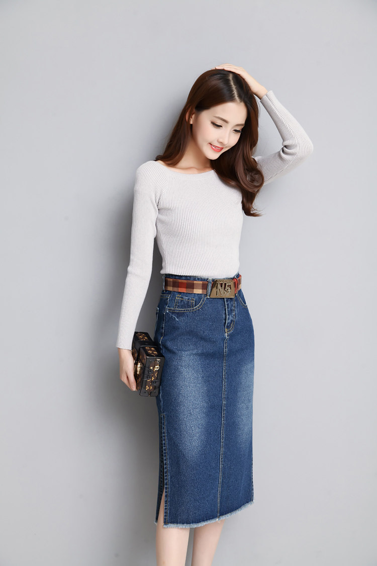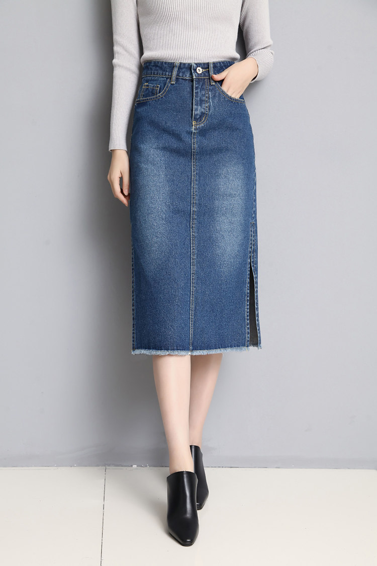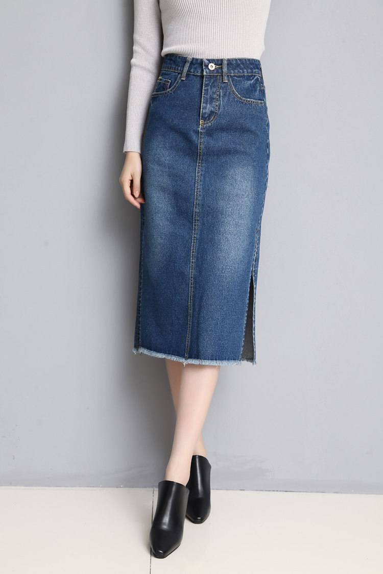 Новинка 2018, женские весенне-летние стильные синие облегающие джинсовые юбки-карандаш с разрезом по бокам, джинсовые брюки, размер RQA163