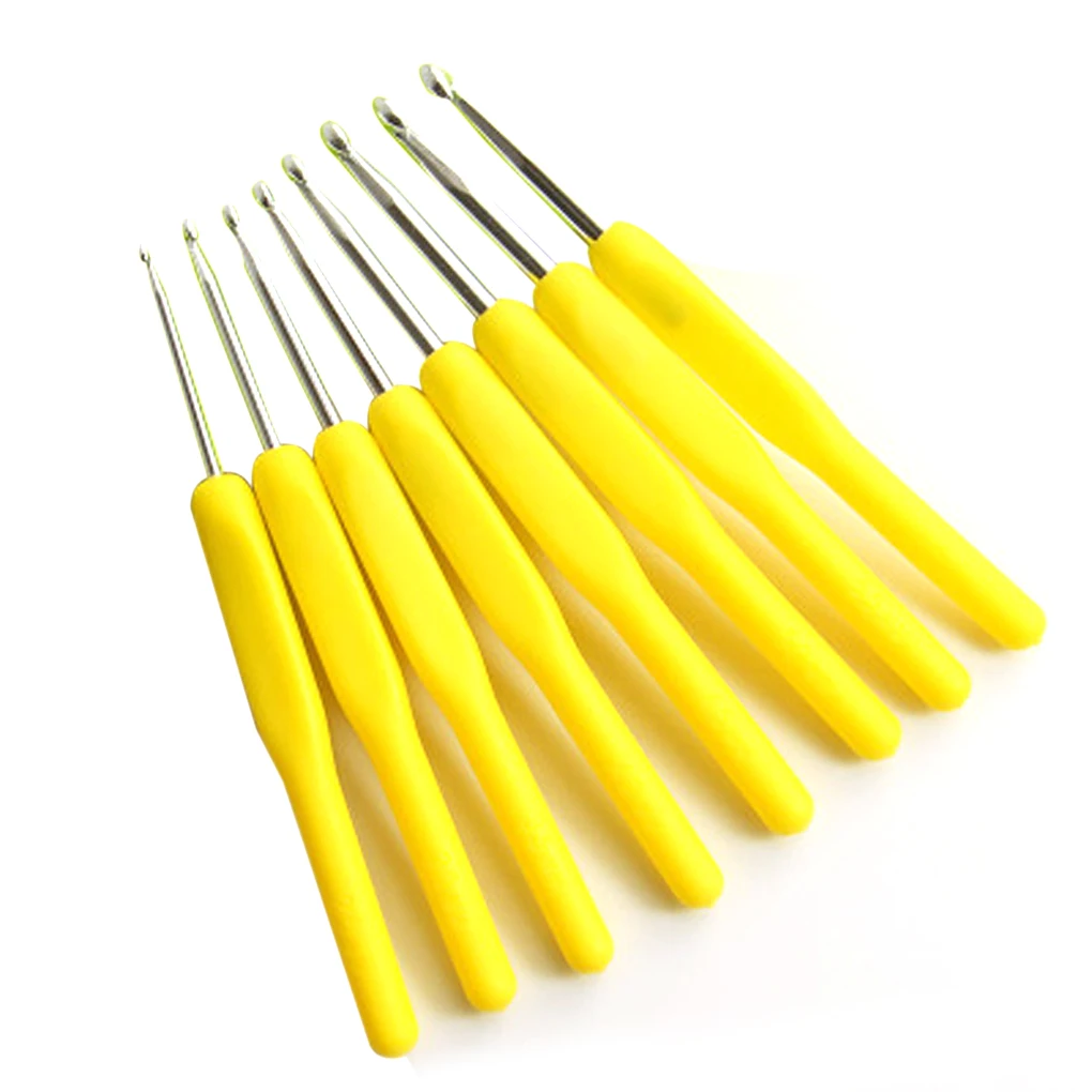 Набор из 8 вязальных инструментов для вязания крючком с мягкой ручкой, Цветной алюминиевый крючок