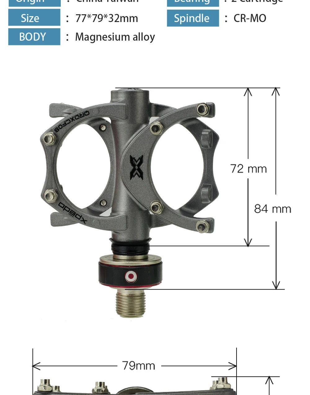 Бренд: Xpedo Модель: XCF08MC Материал: Магниевый сплав (Центр подшипника: Cr-Mo CNC Точная отделка корпуса подшипника: DU/Герметичный Palin) Размер: 83x80x31 мм Вес: 254 г/пара (не быстро снимается)