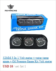 52 мм 3 в 1 вольт метр + Датчик температуры воды + Датчик давления масла набор вольт метр или датчик температуры масла тройной Mete PQY-TAG01/02/03