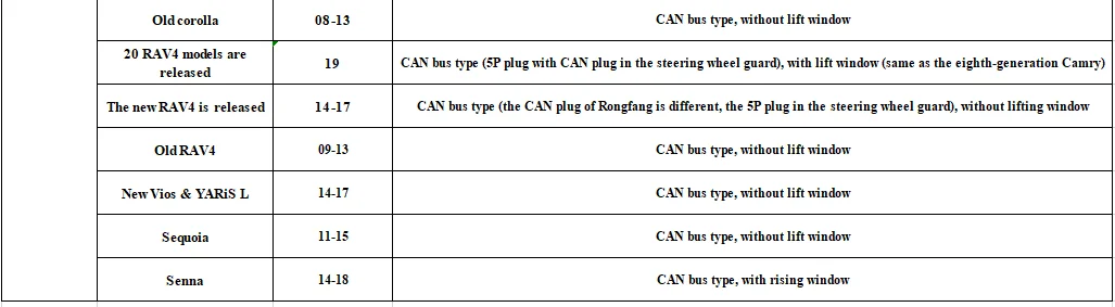 У нас имеется не только canbus play and plugFordИToyotaМодели, но такжеMazda. Умные часы, Автомобильный ключ, Автомобильная сигнализацияЯвляется универсальным,ЖК-дисплей сенсорный экран мобильный телефонУправление также универсальное, подходит для всех товаров без кнопки запуска. У нас есть много игр и подключений canbus, которые не включены в список. Если ваша модель не указана выше,Пожалуйста, свяжитесь с нами, и мы порекомендуем вам правильный продукт.Демонстрационное видео