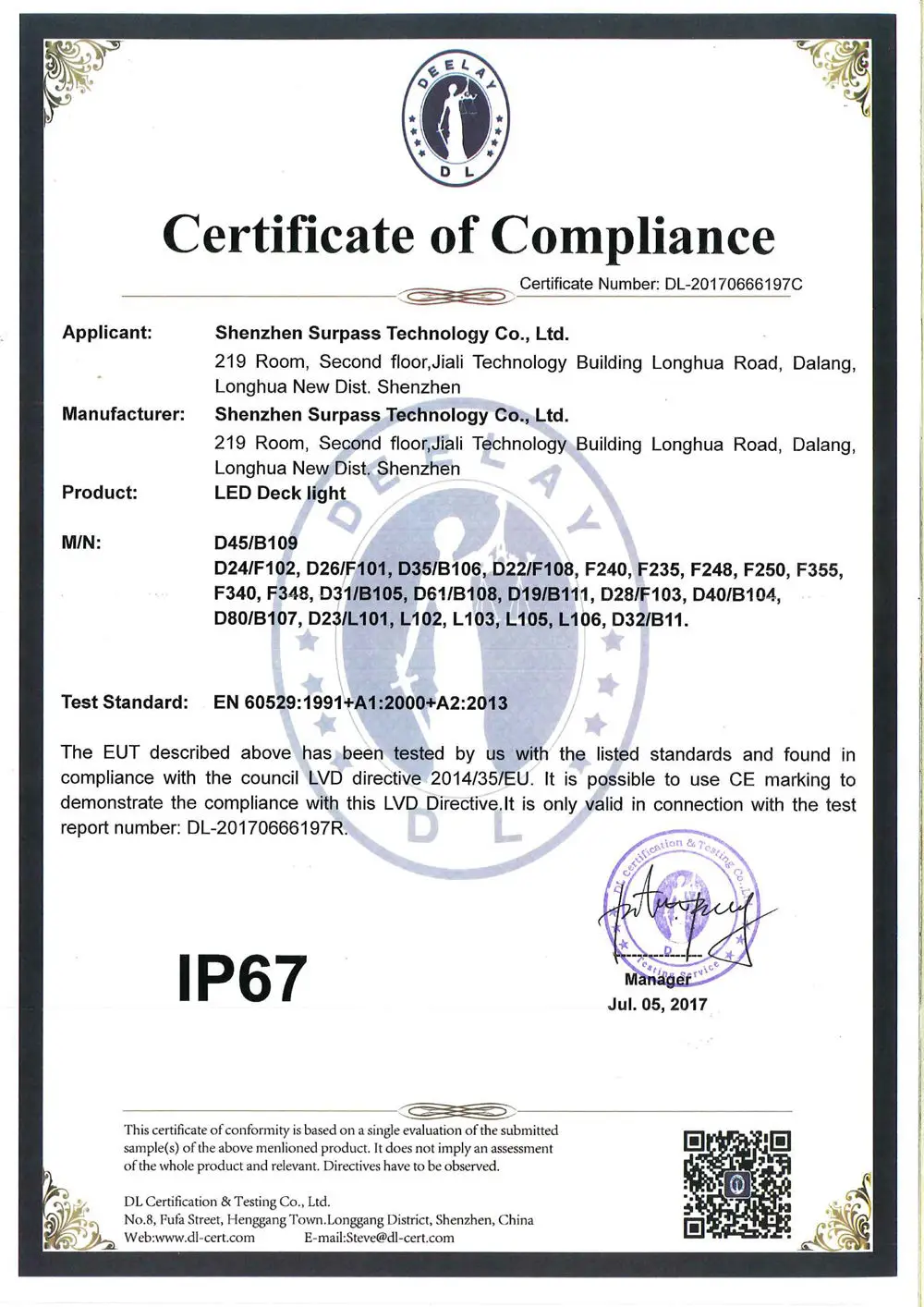 Сертификация: CE ROHS
