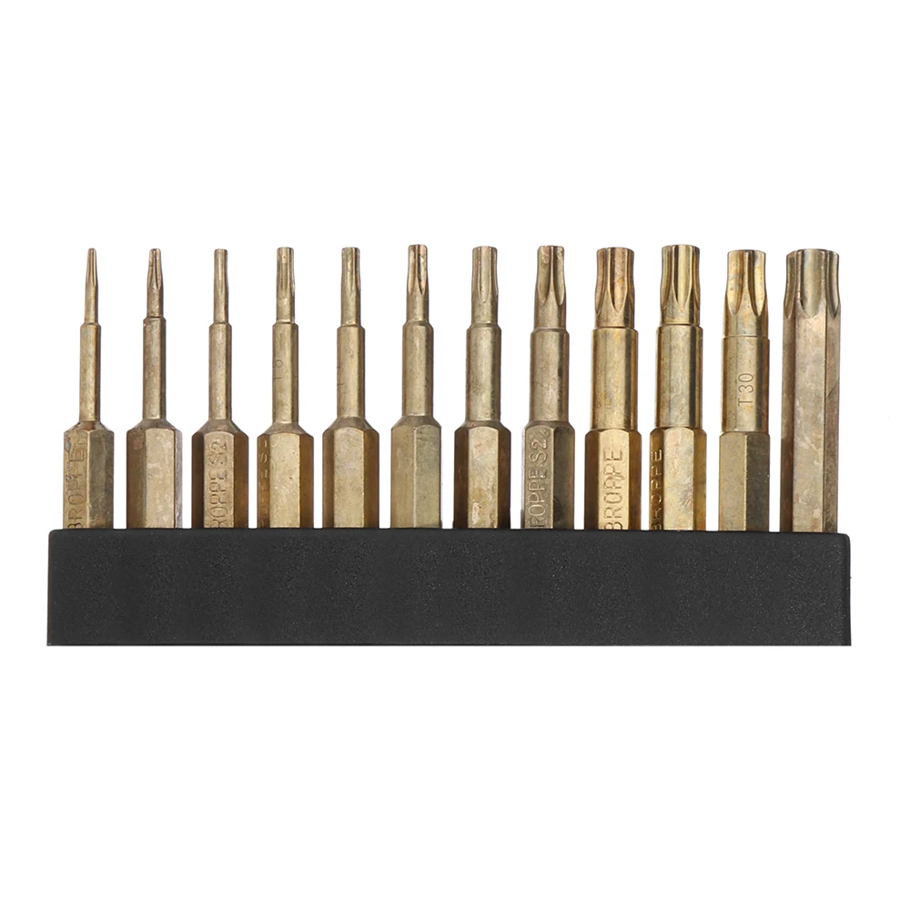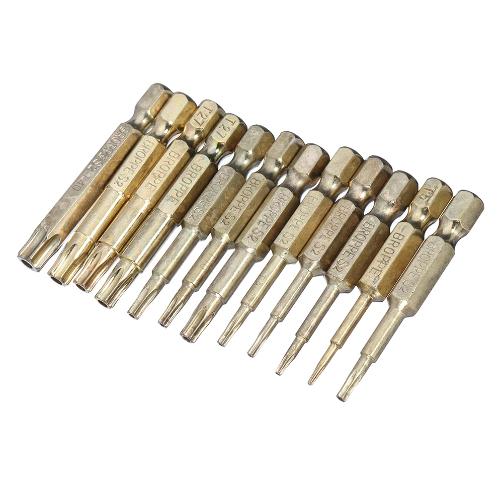 Broppe 12 шт Золотой T5-T40 50 мм магнитный торкс отвертка Биты 1/4 дюйма шестигранный хвостовик
