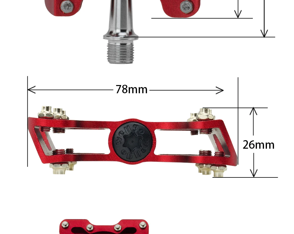 Бренд: Wellgo Модель: KC001 Материал: алюминиевый сплав Подшипники: герметичные подшипники Размер педали: 100x75x25 мм Вес: 274 г/пара