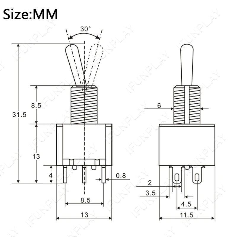 Каждый переключатель поставляется с двумя шестигранными гайками, плоской и фиксирующей шайбой. Простая установка.