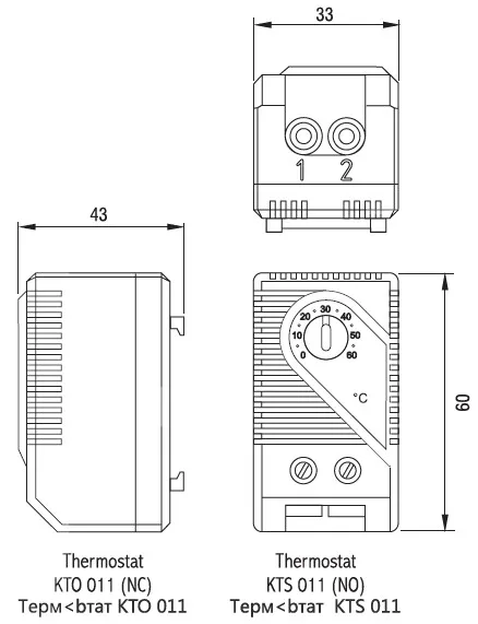 Термостат (нормально открытый); Контактное устройство для регулирования вентиляторов фильтров и теплообменников или для переключения сигнала, разработанного при превышении температурного предела.