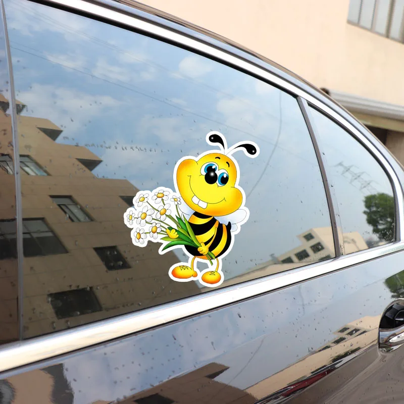 YJZT 15,3 см * 17,6 см пчелы держат букет цветов Наклейка ПВХ стикер автомобиля моделирование 12-300702