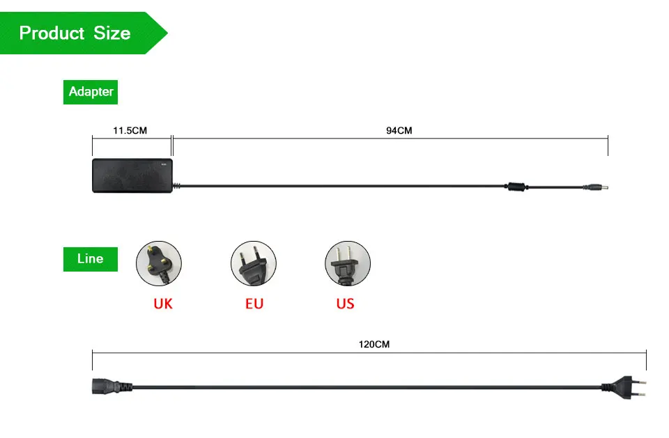 Описание: DC 12V 1A / 2A / 3A / 5A/ 6A/ 8A адаптер питания Мощность: 12 Вт/24 Вт/36 Вт/60 Вт/72 Вт/96 Вт Вход Напряжение: AC100V-240V Выходное напряжение: 12 В постоянного тока Выходной ток: 1A ~ 8A Выходной адаптер Размер разъема: 5,5 мм x 2,5-2,1 мм Совместимость Оболочки Материал: Пластик Соответствие безопасности: FCC / CE /Rohs Высокая цена-эффективная, надежность с промышленными стандартами Встроенная защита от перенапряжения, перегрузки по току и короткого замыкания Рабочая температура: 0 ~ 40C Температура хранения: -20 ~ 60C Влажность окружающей среды: 0 ~ 95% без конденсации Особенности: Встроенная защита от перенапряжения, перегрузки по току и короткого замыкания PWM дизайн, убедитесь в стабильности и высокой эффективности питания. Защита от помех, прошел тест EMC, волна менее 20 мВ. Постоянное напряжение на выходе, предполагаемый стабильный источник питания для светодиодный освещения, чтобы достичь длительного срока службы Типичные области применения Блок питания светодиодной ленты Другое для использования в промышленности