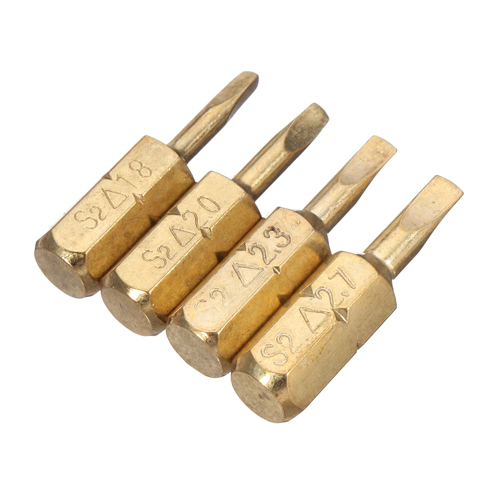 Broppe 4 шт 25 мм 1,8-2,7 мм треугольной формы отвертки биты 1/4 дюйма шестигранный хвостовик Гальваническое бронзовое покрытие