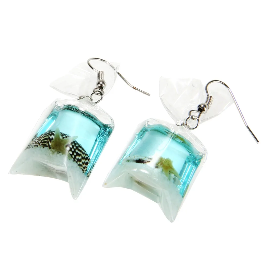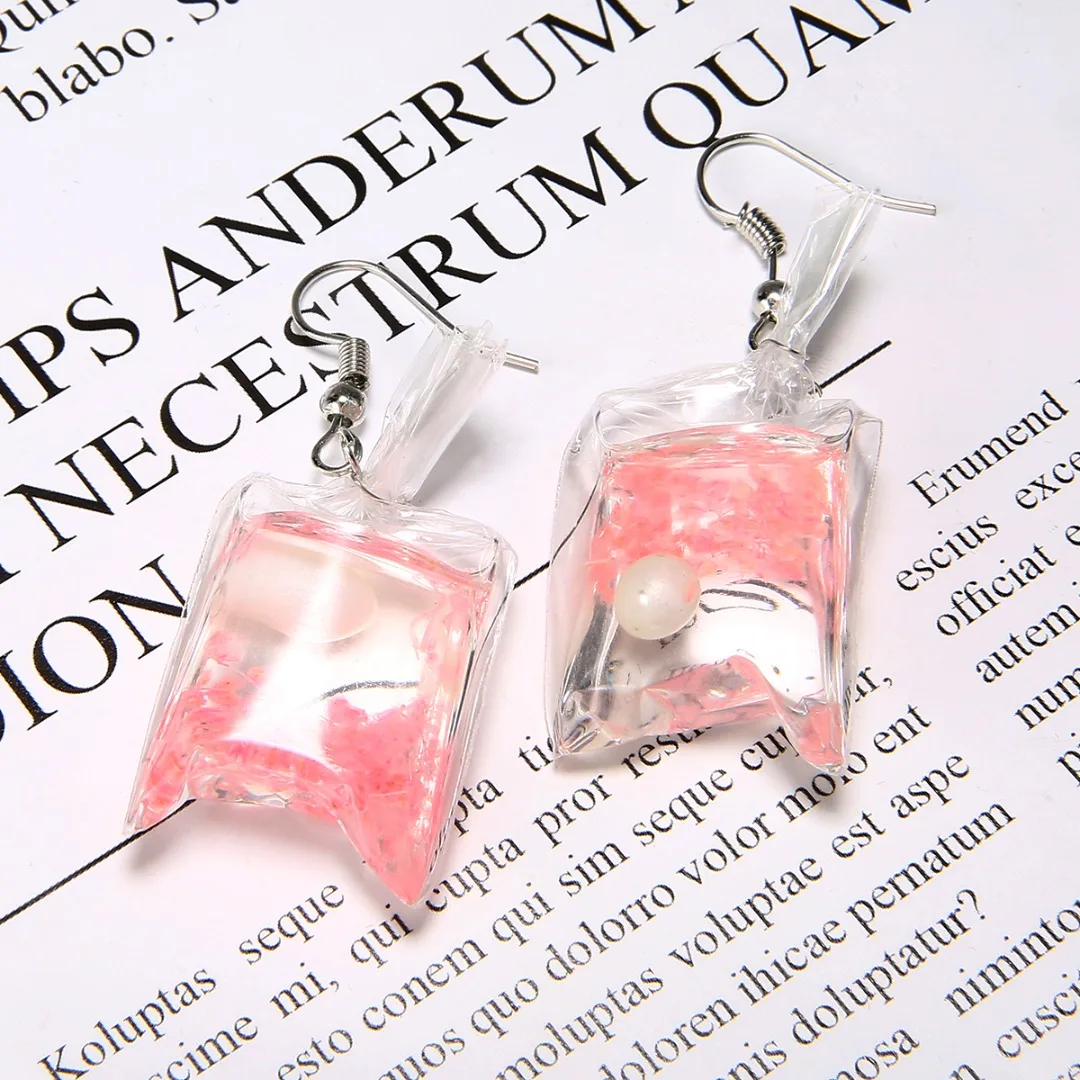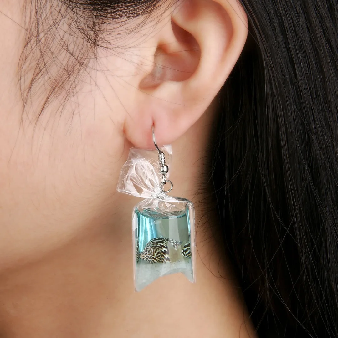 Особенности: дизайн сумки для воды, висячие серьги, забавные ювелирные изделия