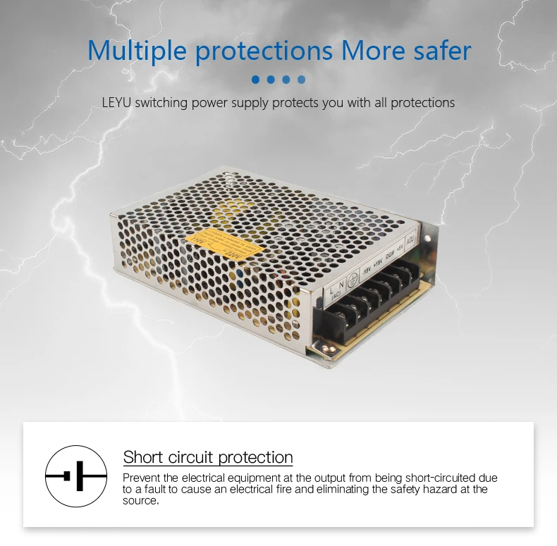 Тип защиты: выключение o/p напряжения, автоматически восстанавливается после удаления неисправности.