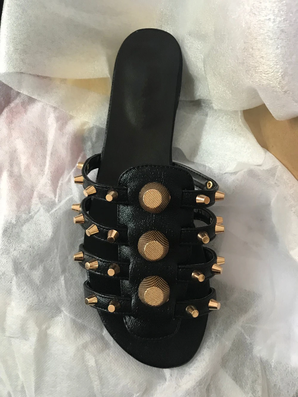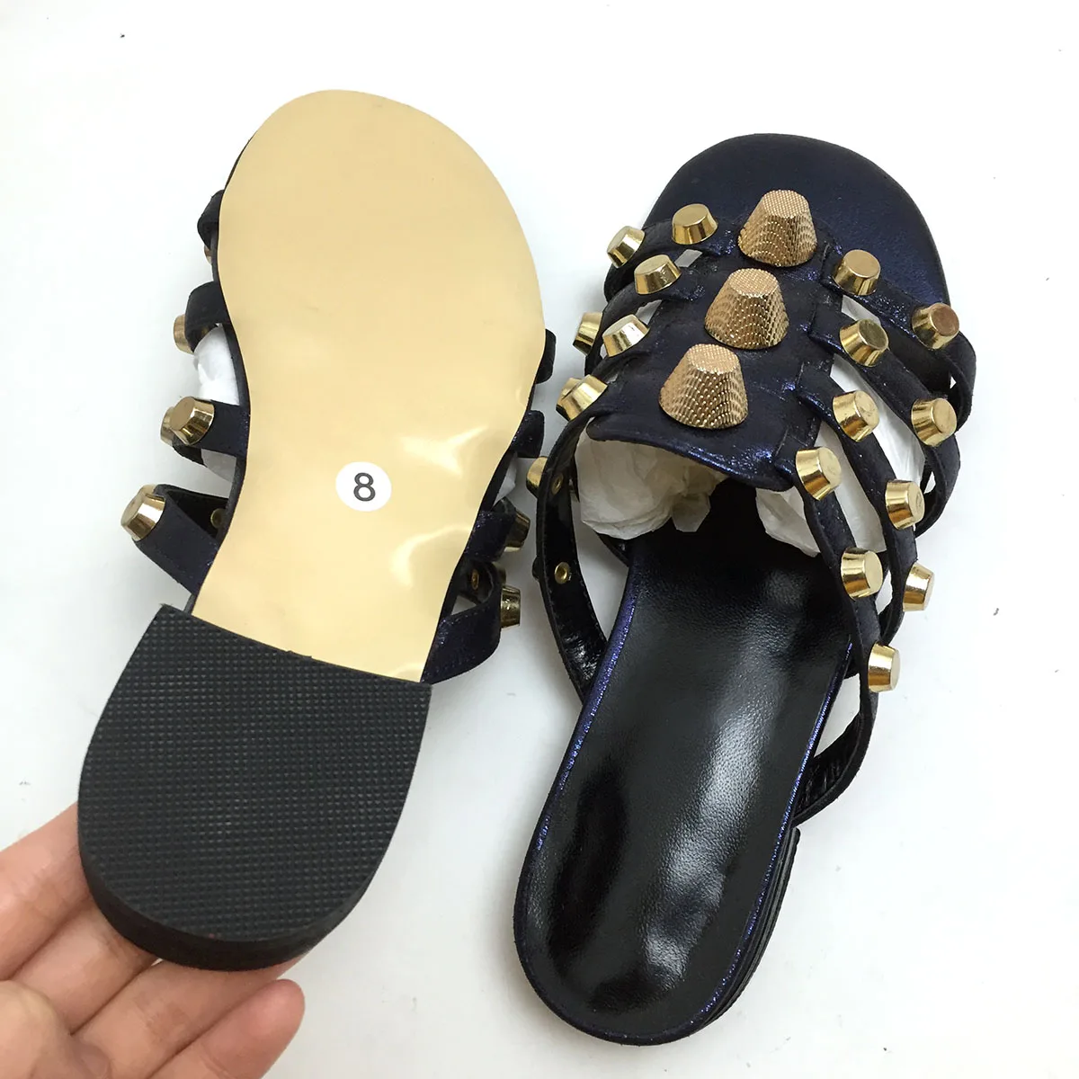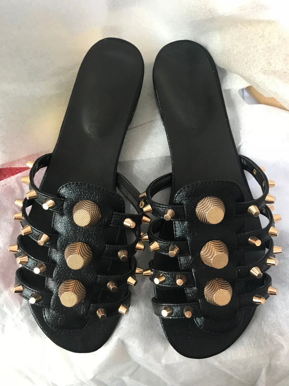 Женская обувь; Сандалии на плоской подошве с шипами; Шлепанцы без задника; Пляжная обувь для отдыха; Повседневная обувь ручной работы; Aimirlly