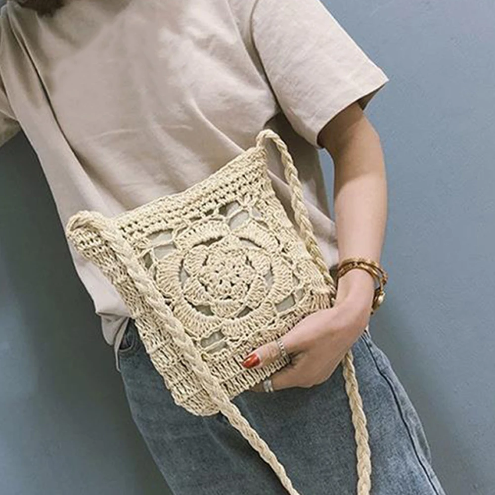 Женская Плетеная соломенная мессенджер, пляжная сумка для хранения цветов, ручная работа