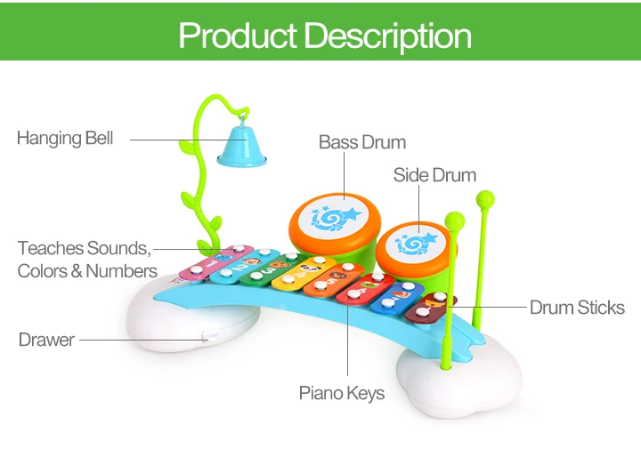 Параметры: ❤Ксилофон фортепиано: веселое и красочное ❤Музыкальная игрушка: Этот 2-в-1 инструмент позволяет вашему ребенку играть на пианино, барабан, ксилофон с песнями. Это помогает малышу легче распознавать узоры и цвета с помощью музыки. Кнопка подсветки может стимулировать чувство ребенка и повысить его интерес. ❤Детская барабанная игрушка: внутри ящика Есть музыкальные баллы. Ребенок может использовать музыкальные баллы для тренировки игры на фортепиано и пения песенок. ❤18 месячные игрушки для младенцев и малышей; ❤Лучший подарок: отличный подарок, полный сюрпризов для мальчиков, девочек, дошкольников и малышей. Вы не поверите, сколько всего может сделать этот маленький автобус! Очень подходит для любого праздника или вечерние.