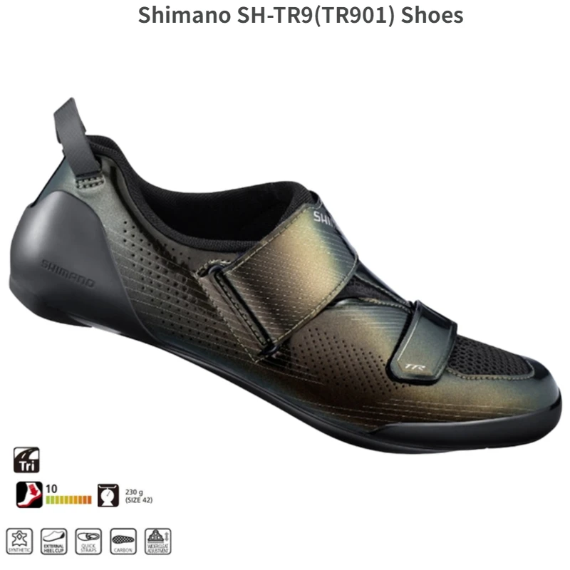 Shimano SH-TR901-туфли для триатлона Флагманская модель туфли для триатлона Профессиональная гоночная обувь для триатлона предназначена для оптимизации перехода и передачи энергии. T1-quick ремешком и широким отверстием делают переход быстрым и легким. Легкая и прочная композитная подошва из углеродного волокна эффективно передает энергию. Водонепроницаемая Синтетическая кожа из микрофибры с отличной воздухопроницаемостью. Внутренняя часть обуви оптимизирована с помощью 3D сетки с отличными быстросохнущими свойствами. Чашечка пятки улучшает стабильность пятки. Большая петля на пятке, которая легко захватывается. Тип клея: SPD-SL Последний тип: Shimano Dynalast Индекс жесткости: 10,0 Оптимальная педаль: PD-R9100 Особенности: Широкий диапазон регулировки скобы, внешняя чашечка каблука Технология: SHIMANO DYNALAST, Silvadur Застежка: Быстрый ремешок Материал верха: Синтетическая кожа из микрофибры + сетка Материал подошвы: композитный материал из углеродного волокна Стандартная Стелька: стелька с высокой плотностью и хорошо адаптируемая арочная подкладка Средний вес: 230 г (размер 42)