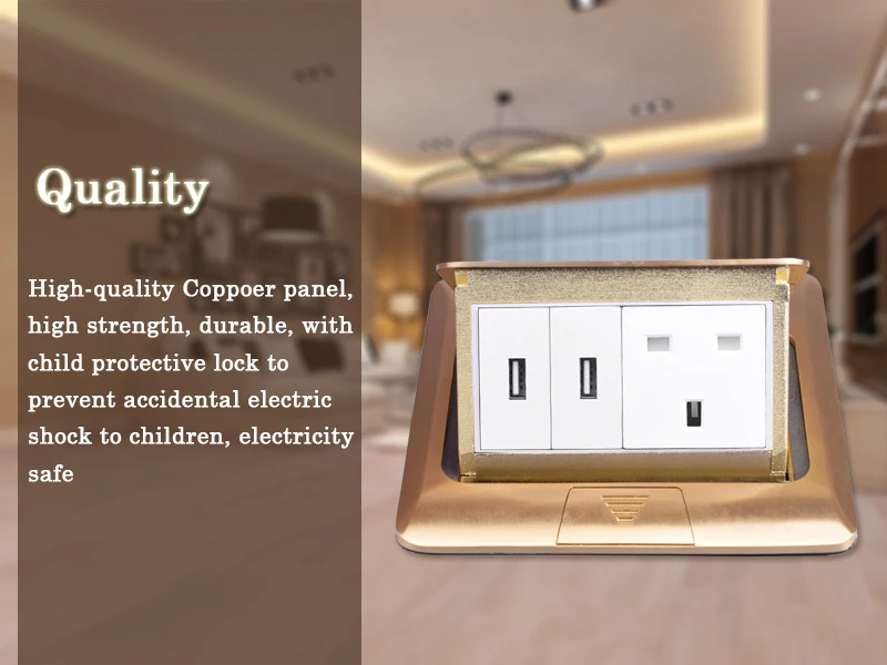 Coswall чистый Медь золото Панель во всплывающем окне слово гнездо 13A Британский Стандартный Мощность розетка с двумя USB зарядка Порты и разъёмы металлический ящик