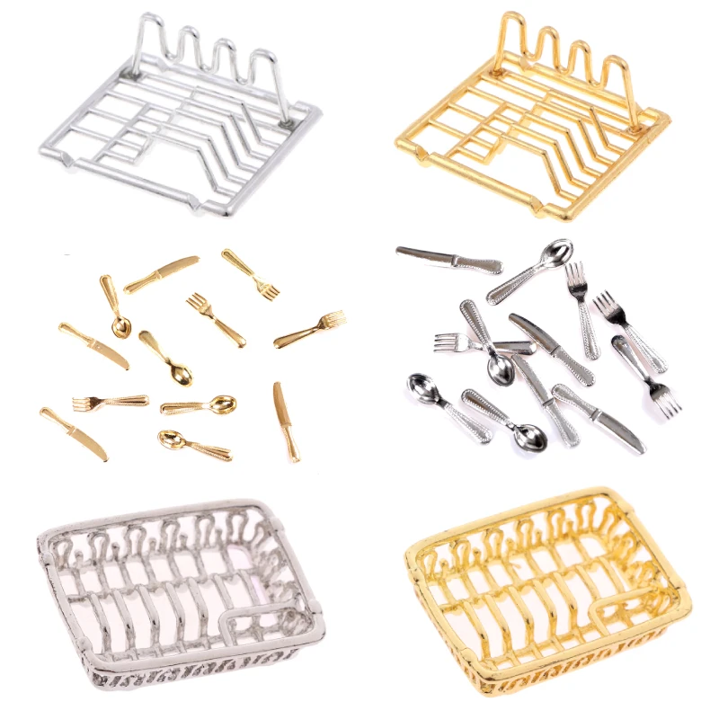 Цвет: серебристый, золотой Размер: 6,2*4*0,8 см Материал: сплав комплектация: 6 шт./компл. миниатюрные инструменты для посуды